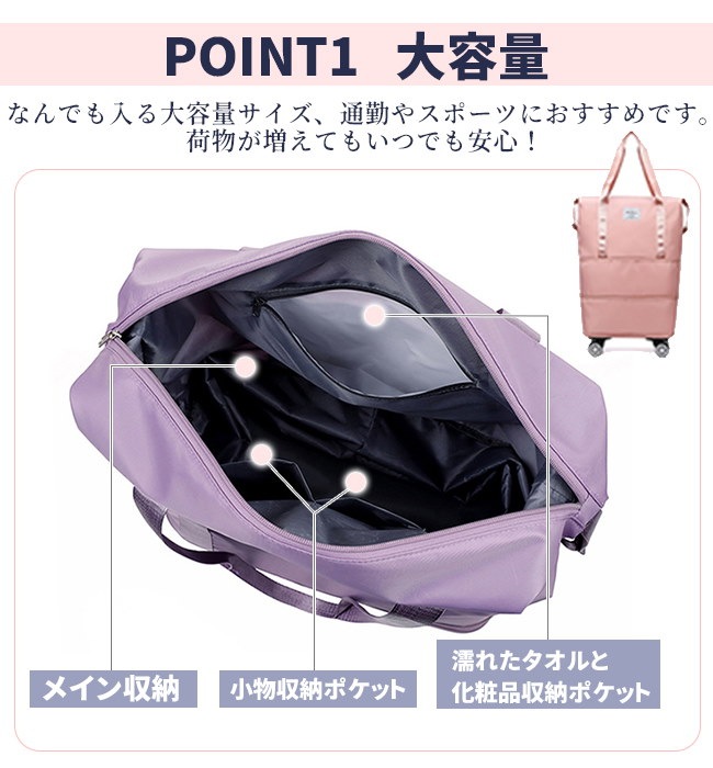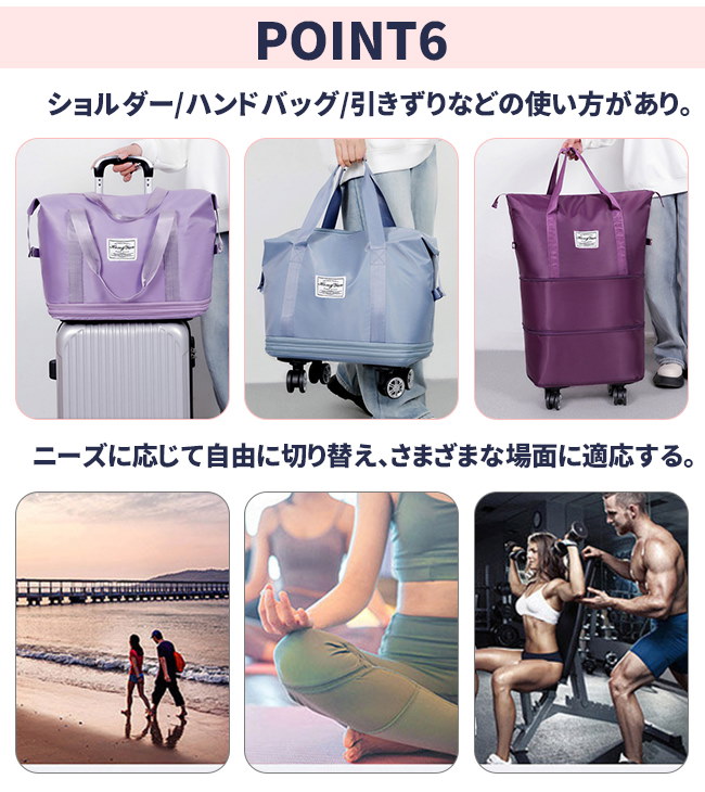 キャリーバッグ ボストンバッグ 3way 拡張可 キャスター付き 折りたたみ 乾湿分離 大容量 軽量 ショルダーバッグ レディース メンズ スーツケース 旅行バッグ トートバッグ トラベルポーチ