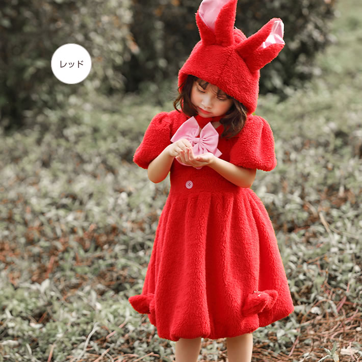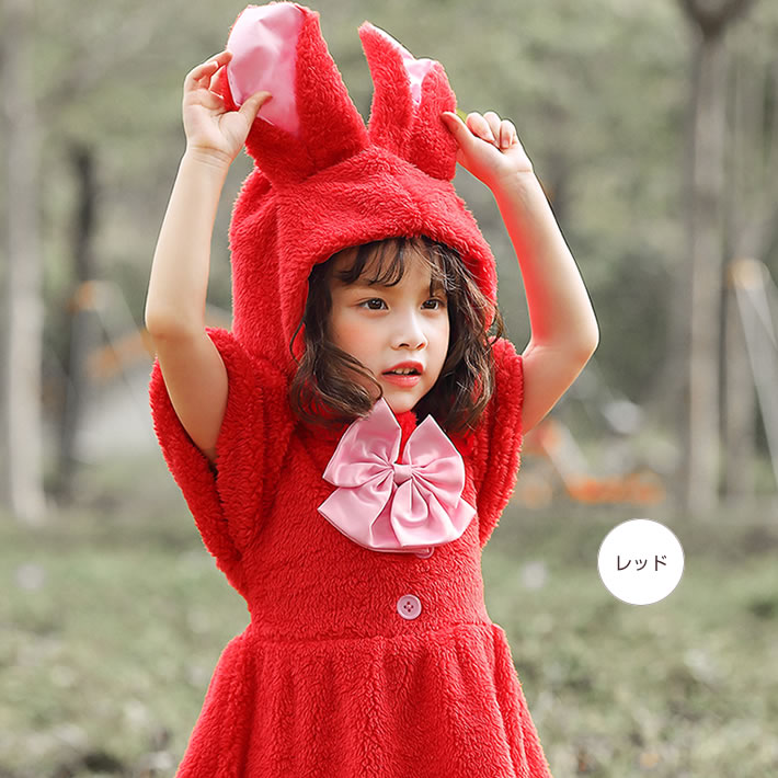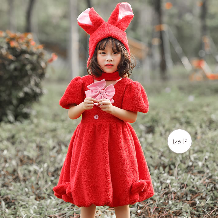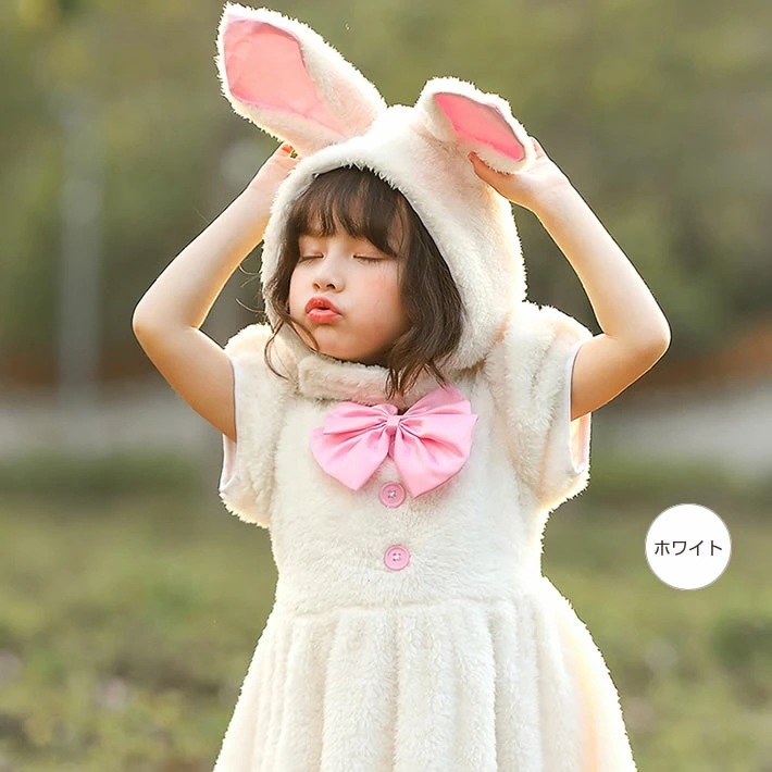 子供 コスチューム ウサギ耳 帽子付き リボン付き モコモコ ワンピース 兎耳 クリスマス服 キッズ 着ぐるみ 仮装 女の子 もこもこ ジュニア 兎 衣装 着る毛布 ジュニア服 暖かい 女児 キッズ服