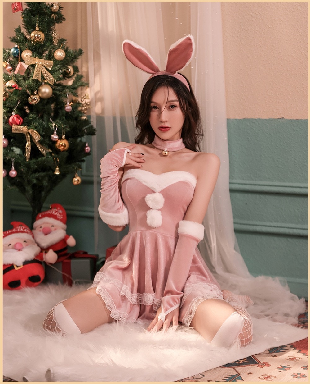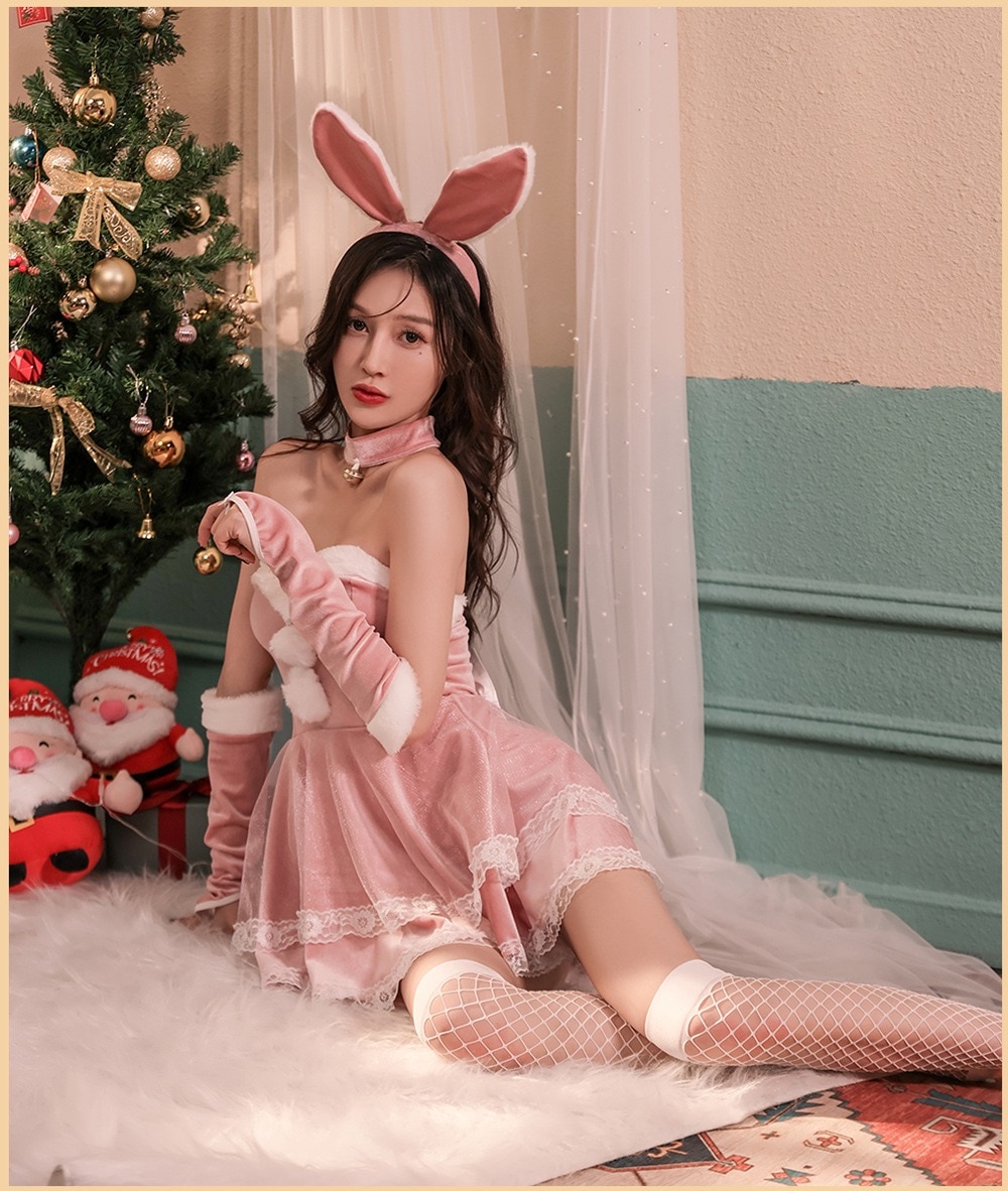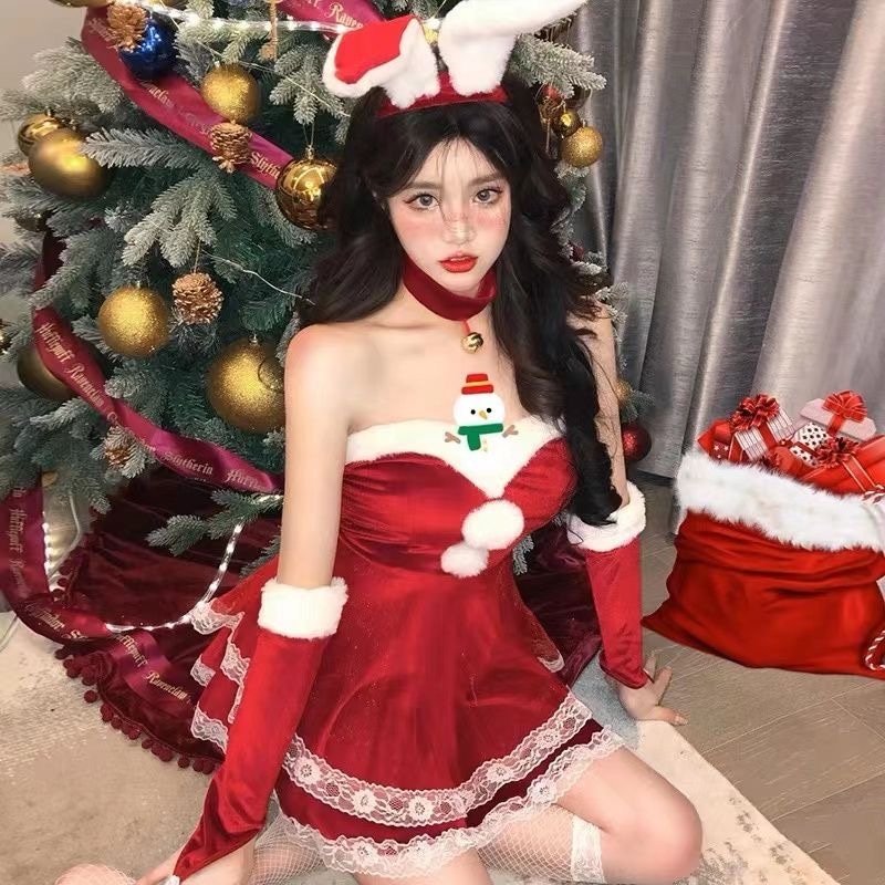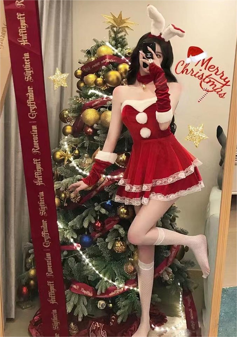 品質保証 5点セット クリスマスコスプレ メイド コスチューム制服写真ロリータコスチュームバニーガール コスチュームクリスマスうさ耳ワンピース サンタコスプレ