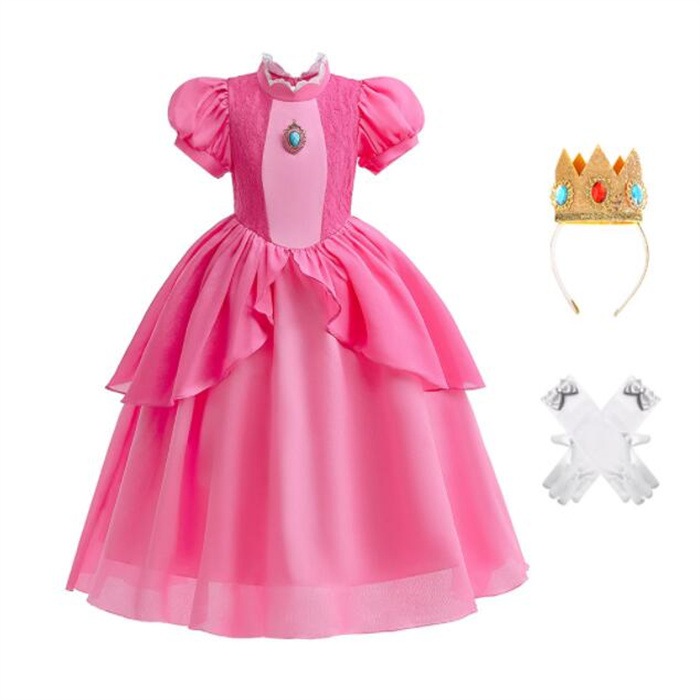ピーチ姫風 コスプレ コスチューム 子供 キッズ 女の子 ワンピース お洋服 コスプレ服 コスプレ衣装 仮装 変装 演出服 イベント ハロウィン 学園祭