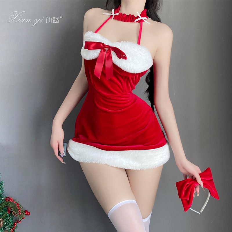 純欲風 エロいコスプレ 首掛け赤いキャミソールワンピースセクシークリスマスコスプレ舞台衣装 コスプレ 変装 仮装