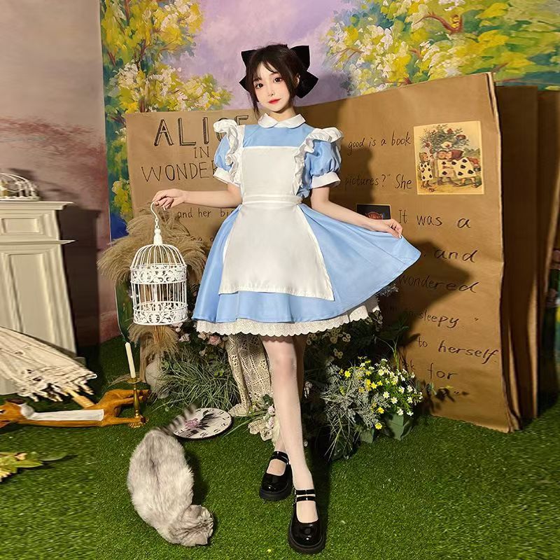 クリスマスの服装 ブルー ワンピース メイド服 女中服 クリスマスパーティー に服を着せる 甘い かわいい クリスマスワンピース