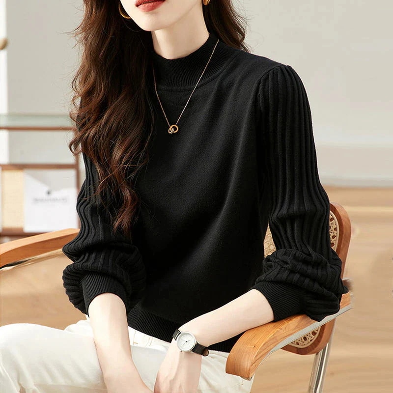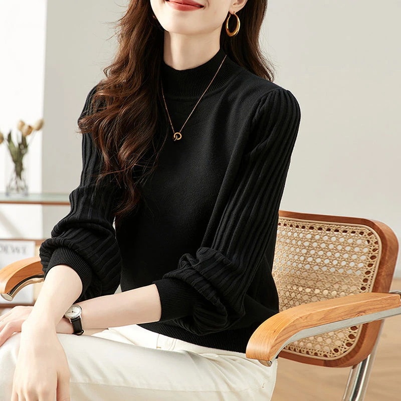 ベーシックニットスウェットトップスニットインナーシンプルセーター 流行り ベーシックニット ニットセーター 保温 リブニット 人気なリブニット韓国ファッション