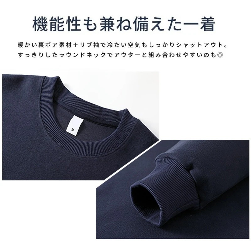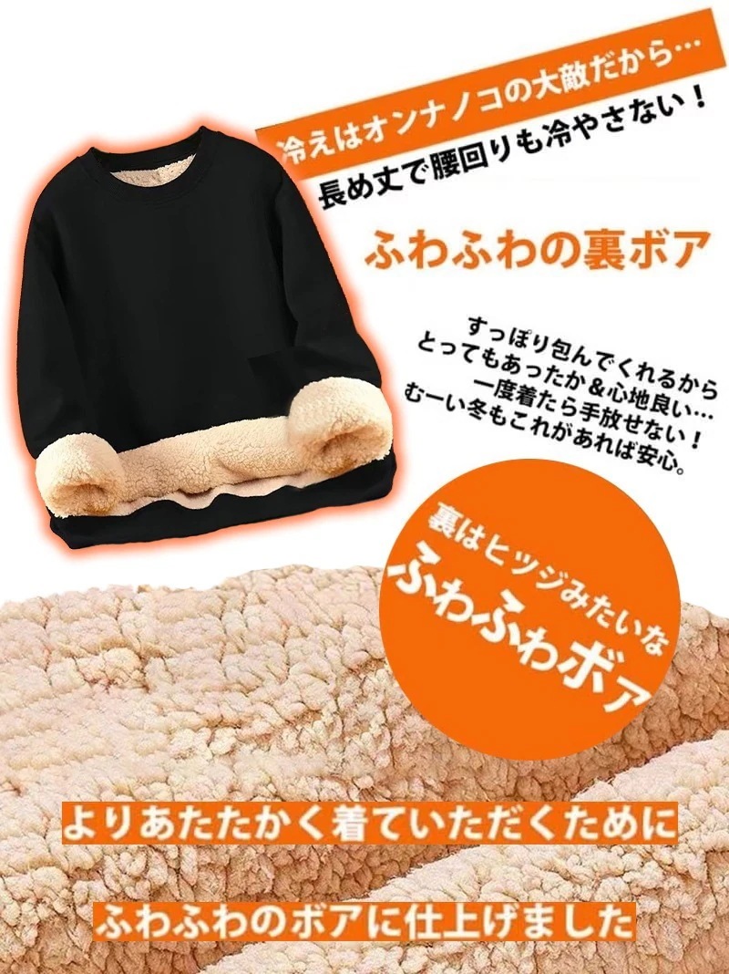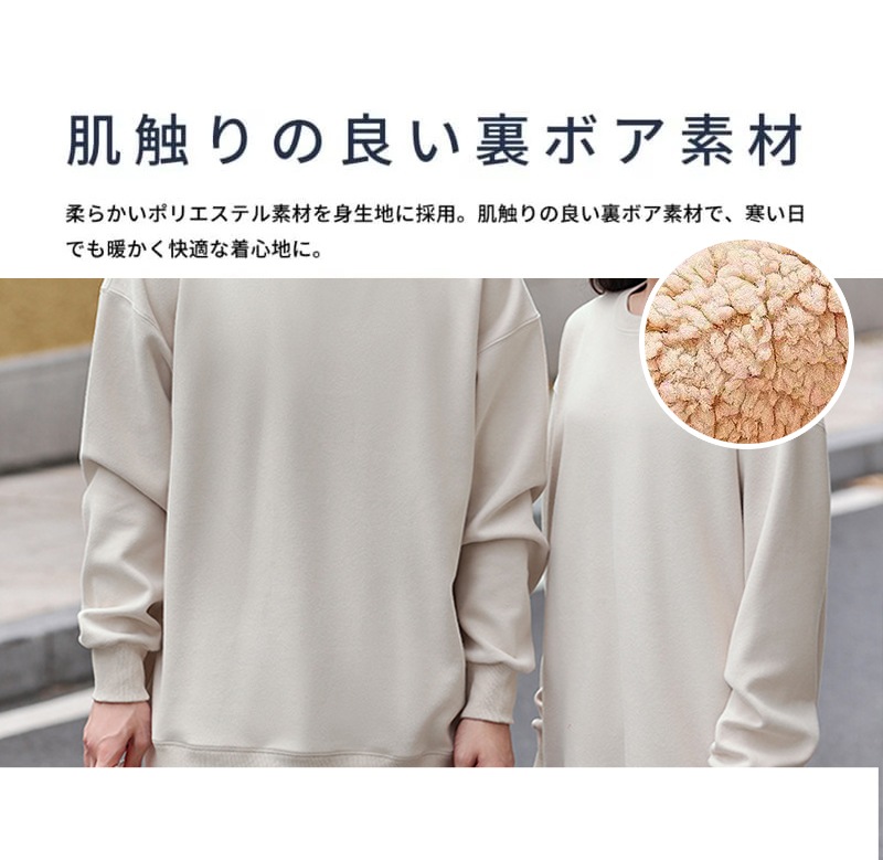 裏ボア トレーナー 裏起毛 レディース 秋 冬 スウェット プルオーバー 長袖 長め 丸首 あったか 防寒 Tシャツ カットソー
