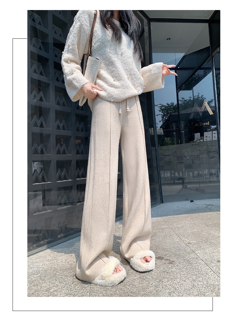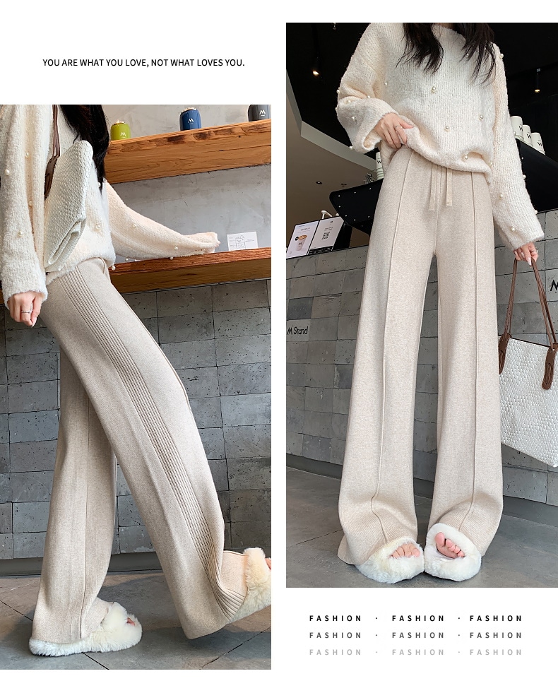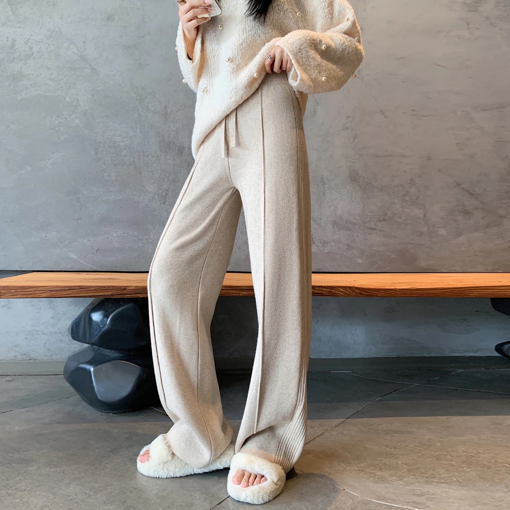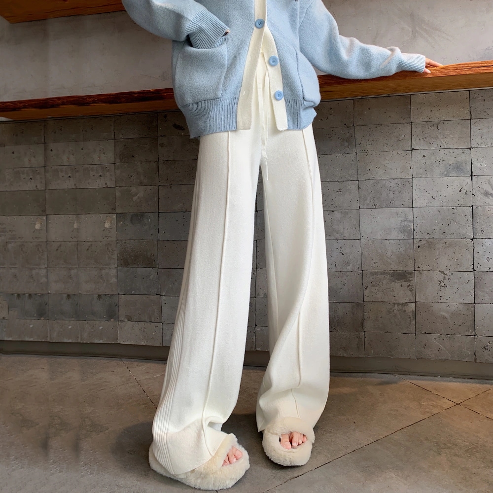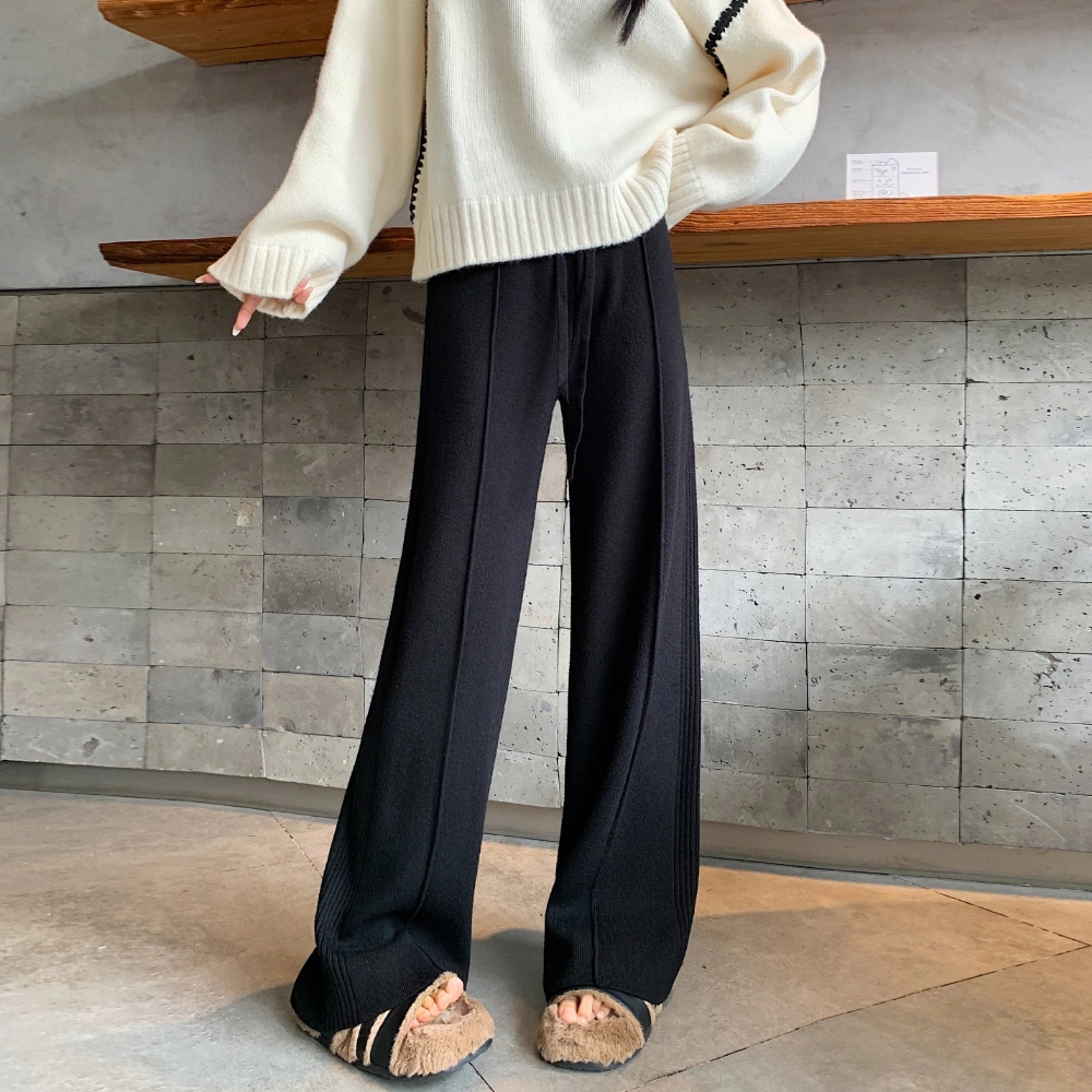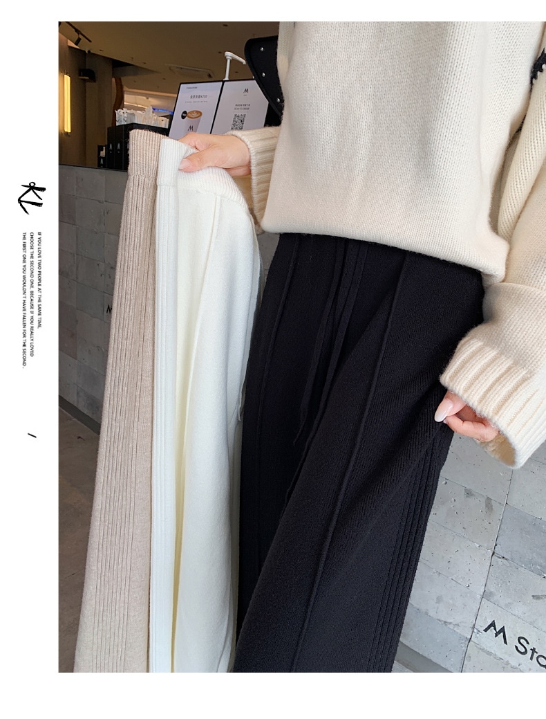 A W-NEW4色ニットワイドパンツガウチョフレアパンツワイドパンツスリット入りボトムスニット ロングパンツ