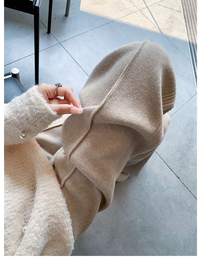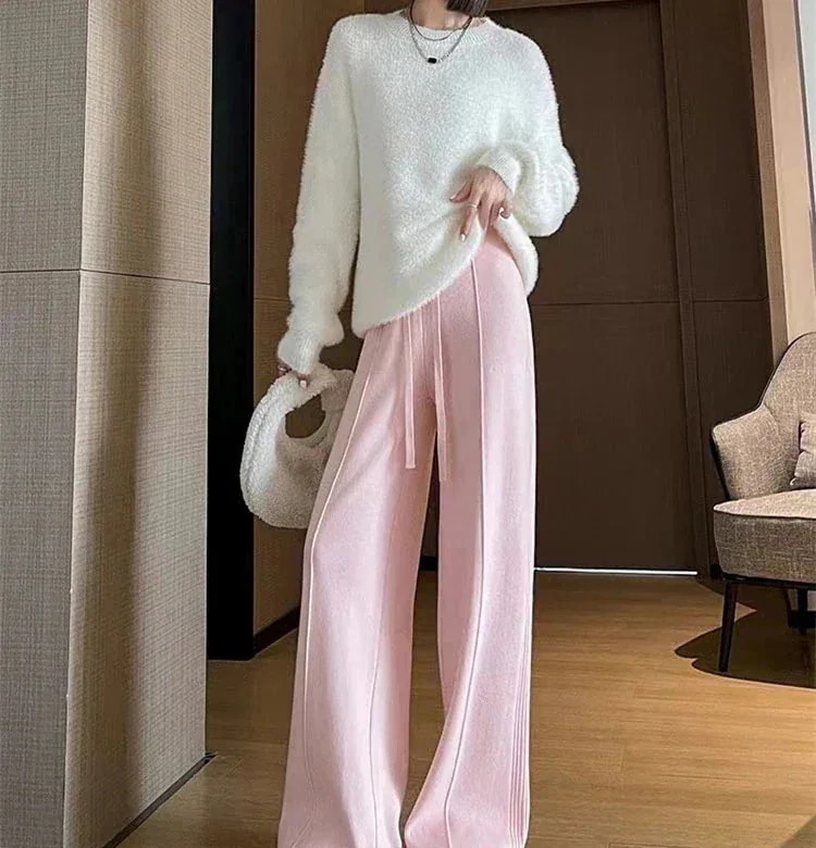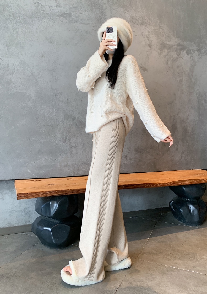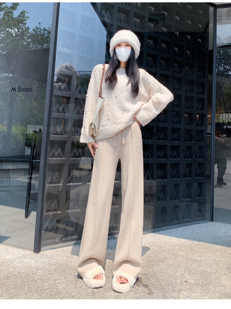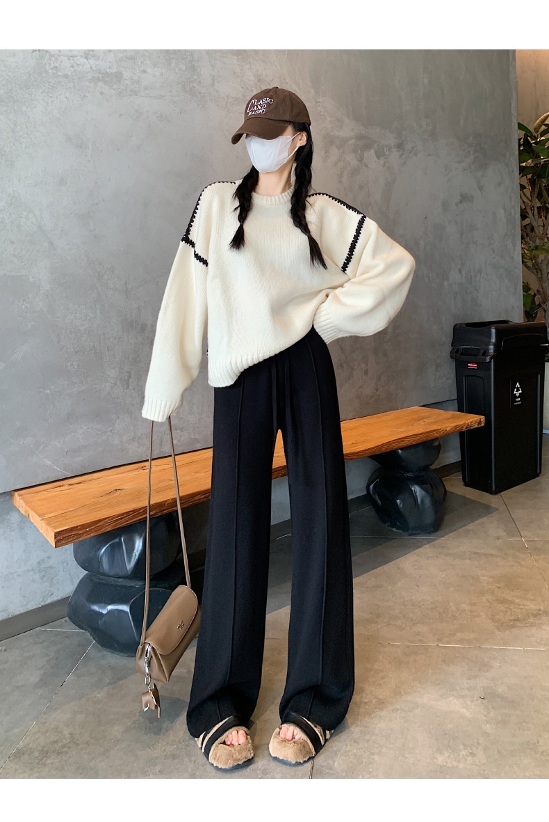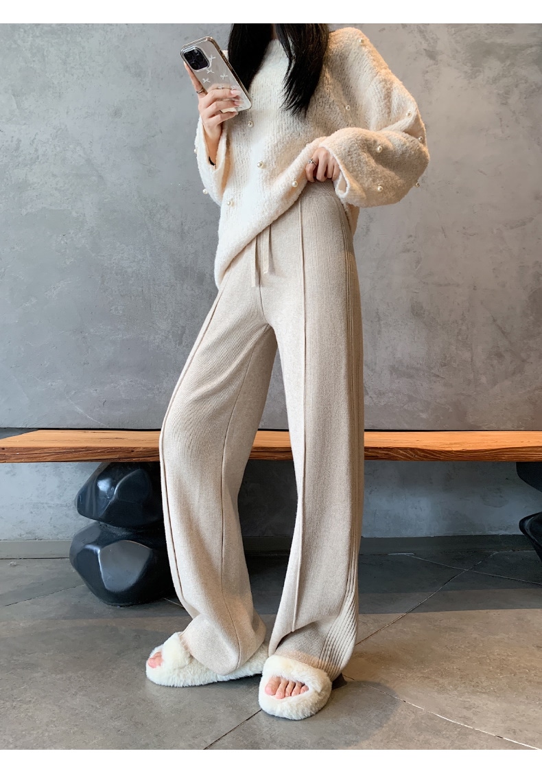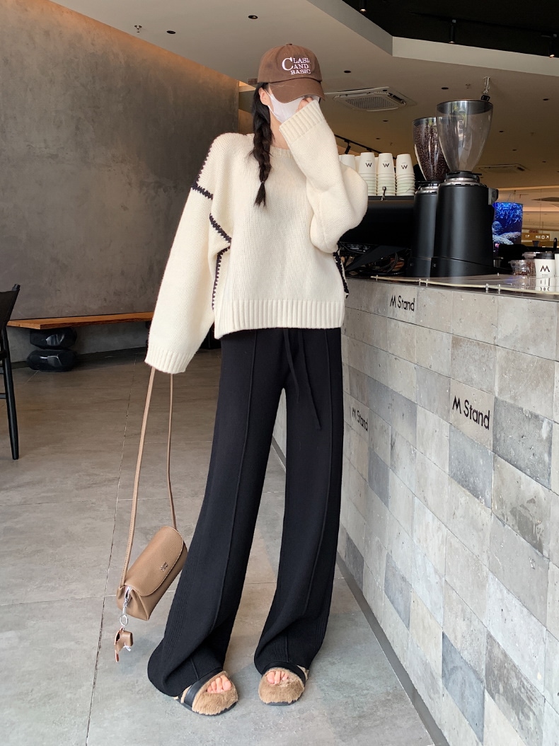 A W-NEW4色ニットワイドパンツガウチョフレアパンツワイドパンツスリット入りボトムスニット ロングパンツ