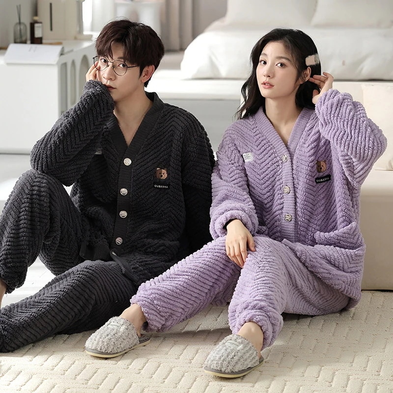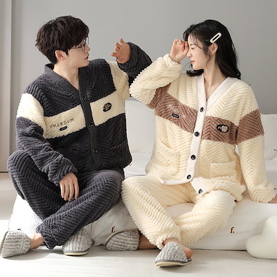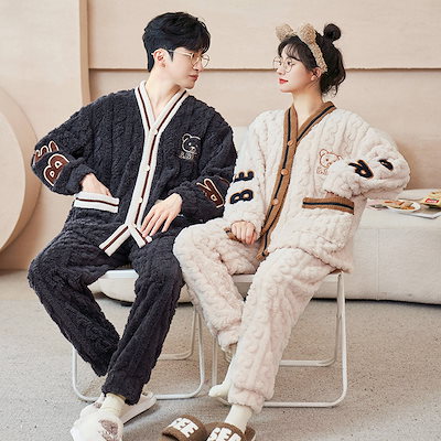 パジャマ レディース メンズ ルームウェア もこもこ ヘアパジャマ カップルルームウェア 秋冬 長袖パジャマ フランネル 上下セット 可愛い ペアルック 厚手 部屋着