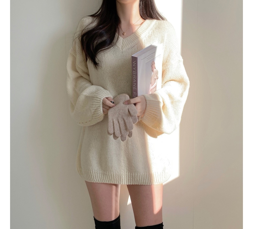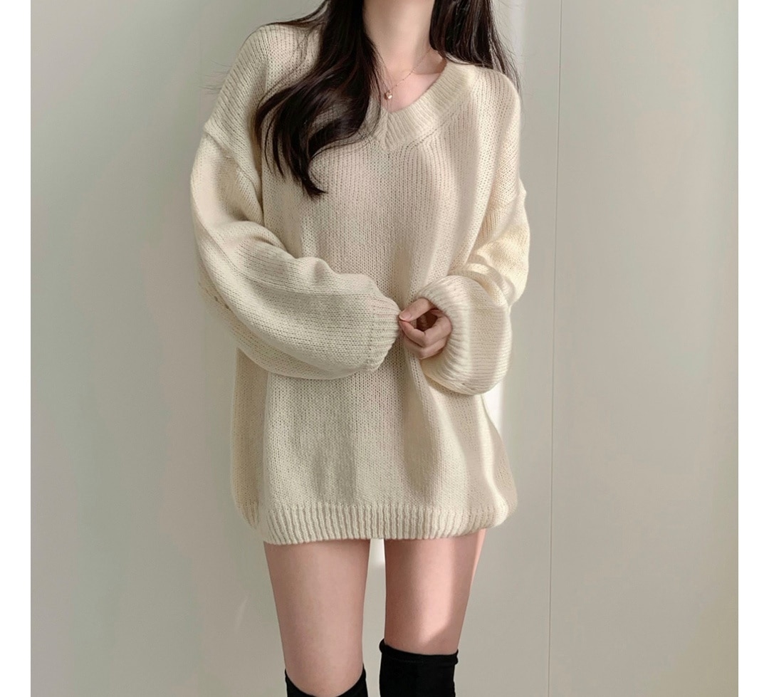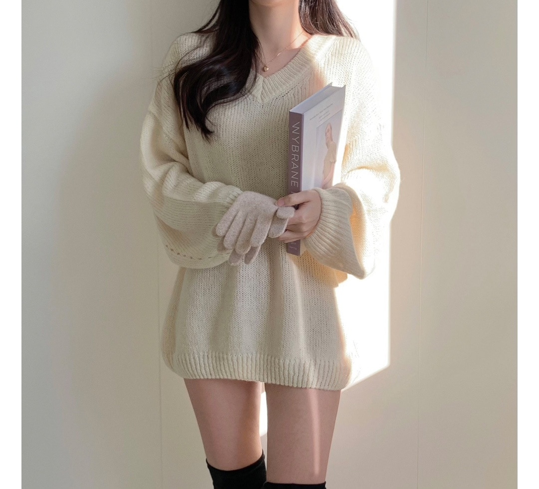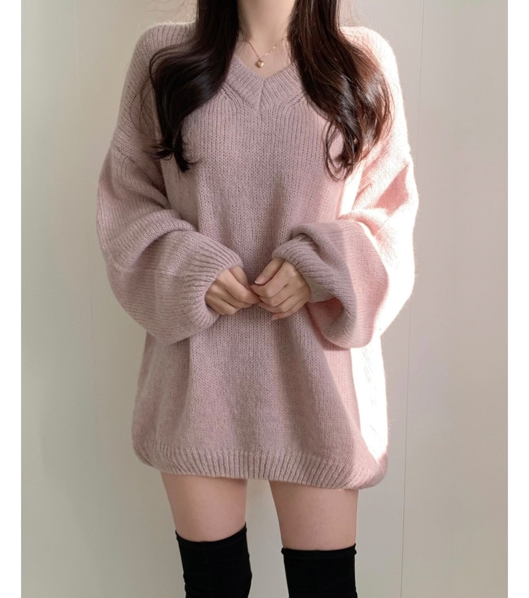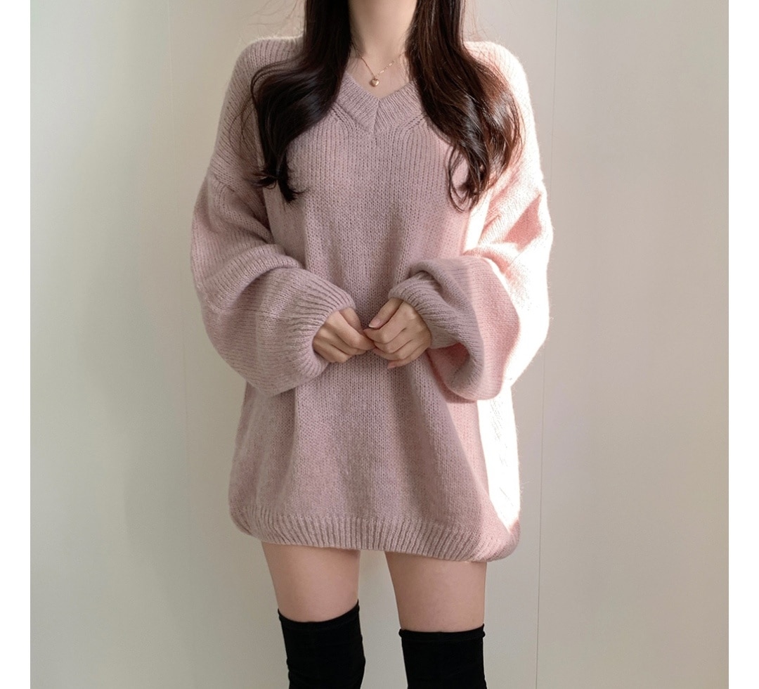 シンプルゆったり人気ニットセーター可愛新作Vネックミニニットワンピース ニット