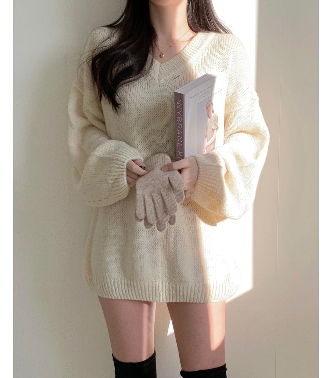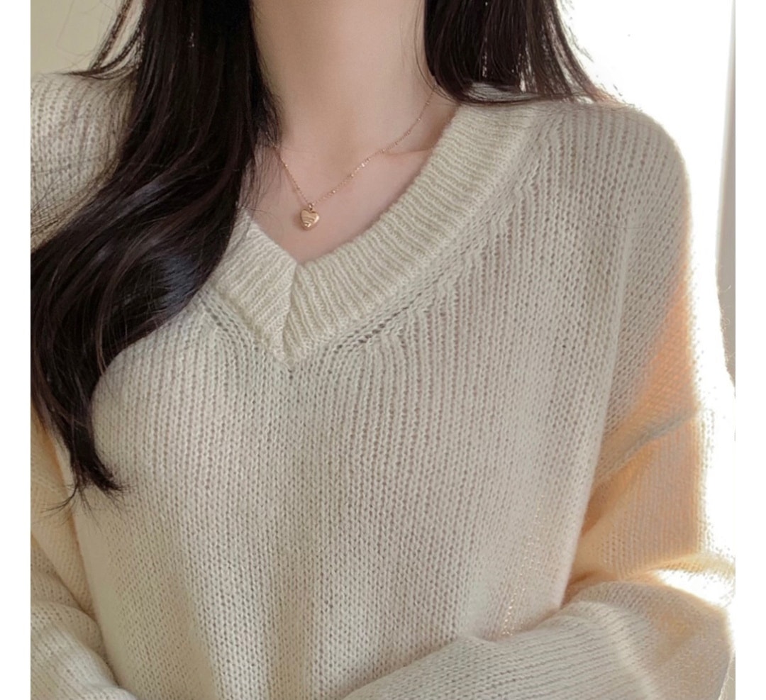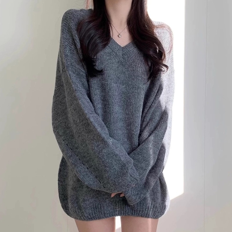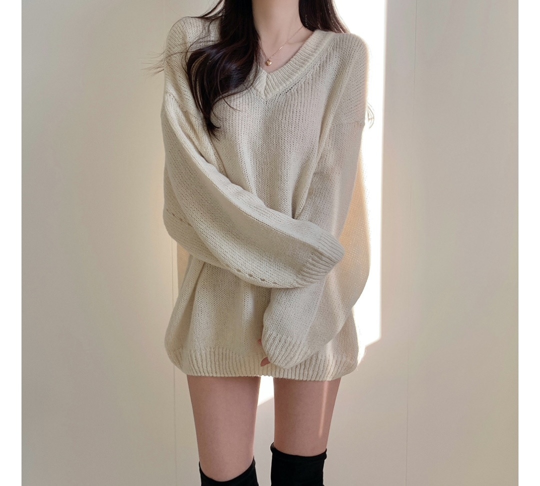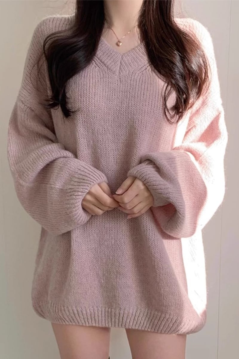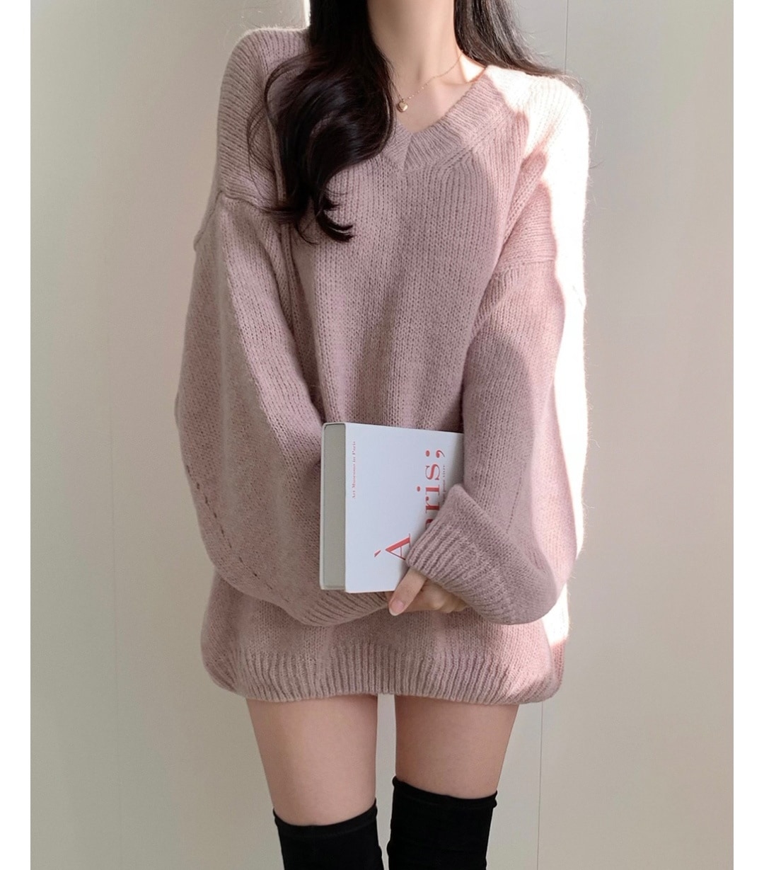 シンプルゆったり人気ニットセーター可愛新作Vネックミニニットワンピース ニット