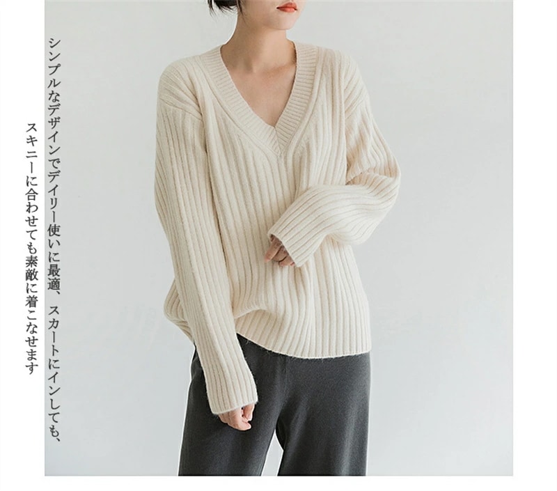 ニット トップス レディース レディース ニットセーター セーター ふんわり Vネック 無地 長袖 冬 秋 プルオーバー 秋 コーデ ながそで ベーシック リブニット リブ編み 柔らかい ニット 無地