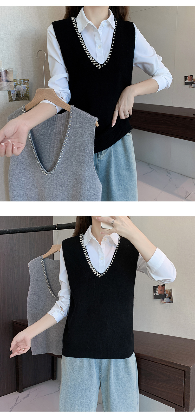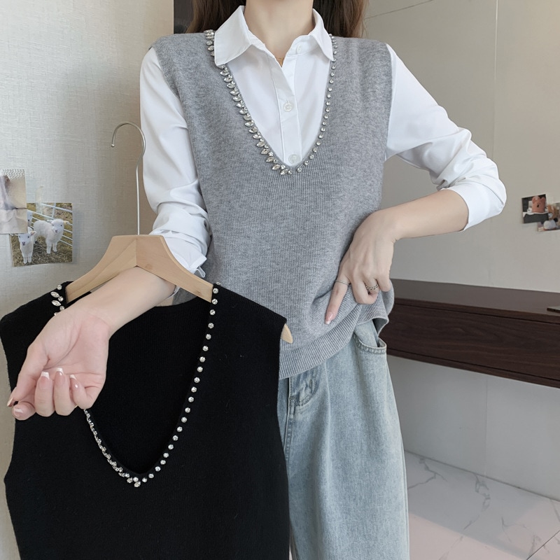 新作 シンプル 気質 通勤 カジュアル ベスト ニットベスト タンクトップ 百掛け トップス アウター ロングベスト