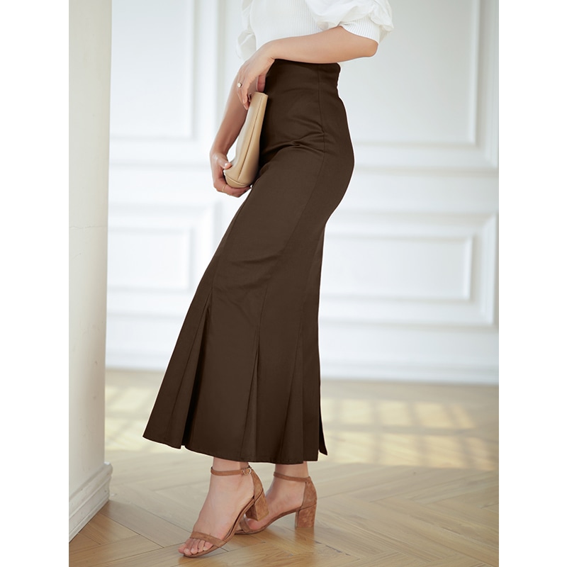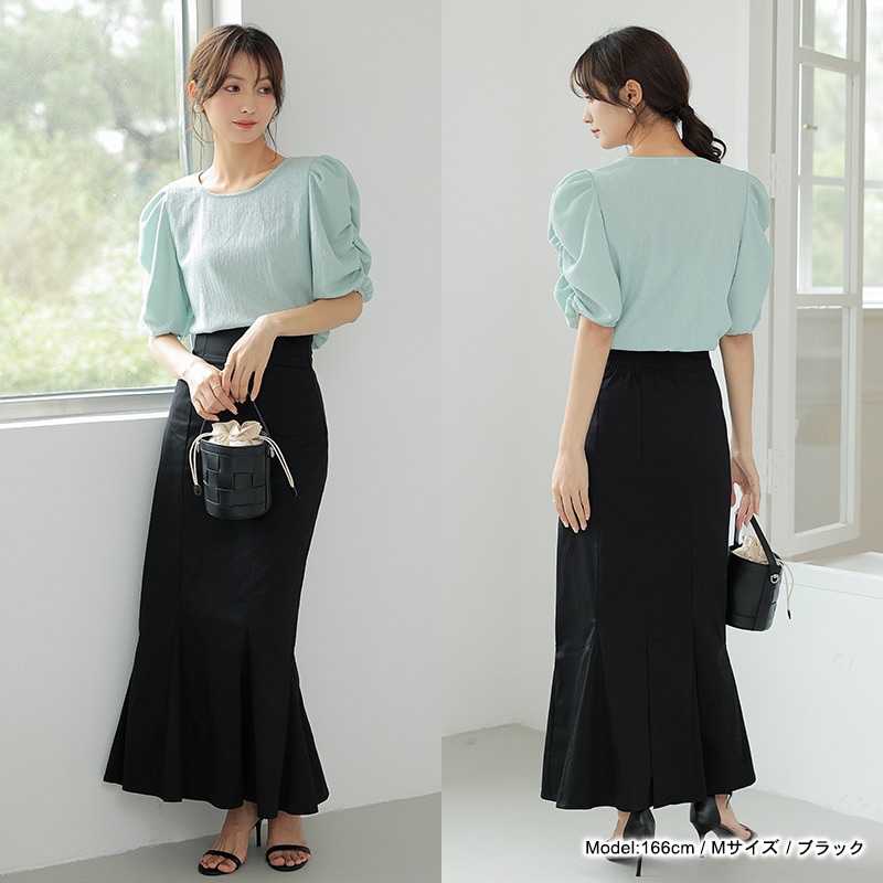 マーメイド スカート ロングスカート きれいめスカート レディース ボトムス スカート S M L 無地 ロング丈 綿 コットン バックスリット ハイウエスト スタイルアップ フェミニン