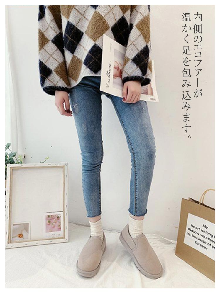 ローヒール ラウンドトゥ フェイクムートンスリッポン 内ボア おしゃれ きれいめ レディース 防寒 痛くない 歩きやすい ムートンシューズ 冬 滑りにくい 女性 合皮 スエード調 秋 歩きやすい ぺた