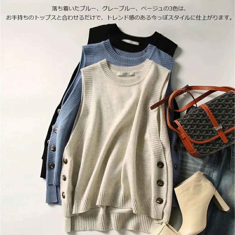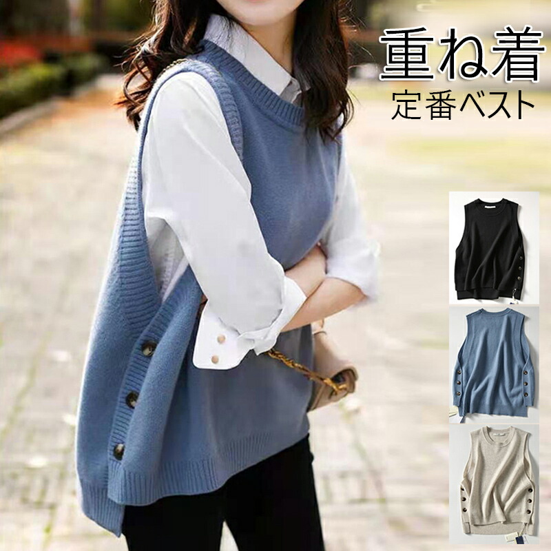 重ね着に最適 ニットセーター レディース タンクトップ ニットベストトップス 重ね着 ニットセーター ニット プルオーバー ニットタンクトップ Uネック ノースリーブ タンク レイヤード風 春 秋