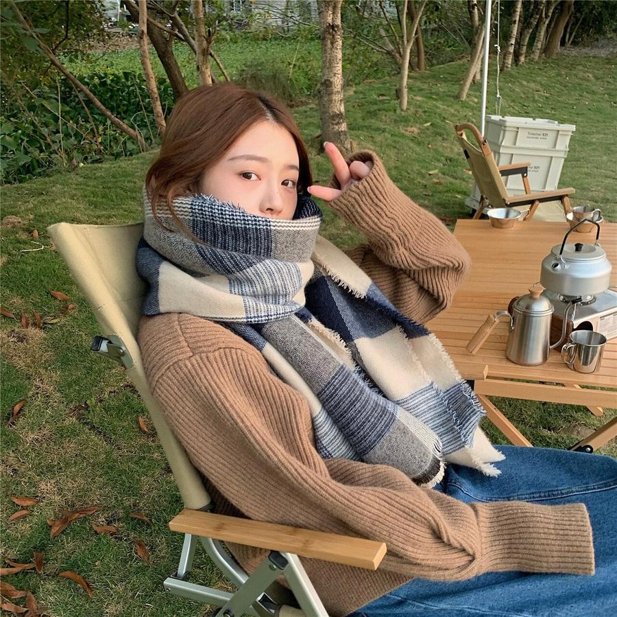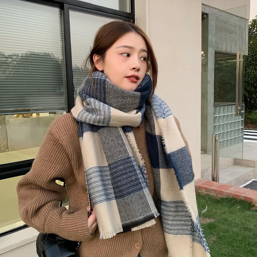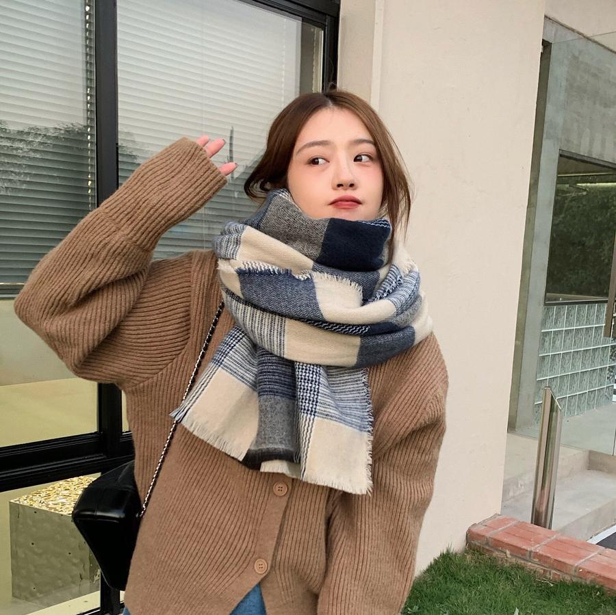 ファーウェイ デイリーマフラーマフラースト一ルマフラ一デイリーマフラー韓国語版秋冬厚手防寒ストールのレトロな格子縞模造カシミヤ学生スカーフ マフラー
