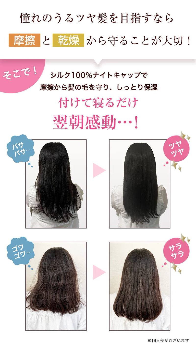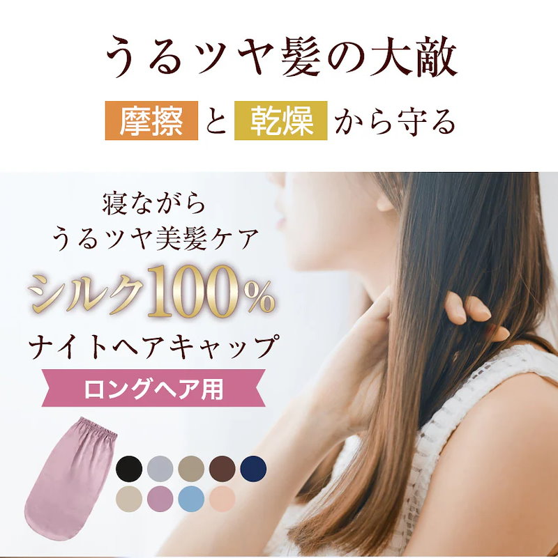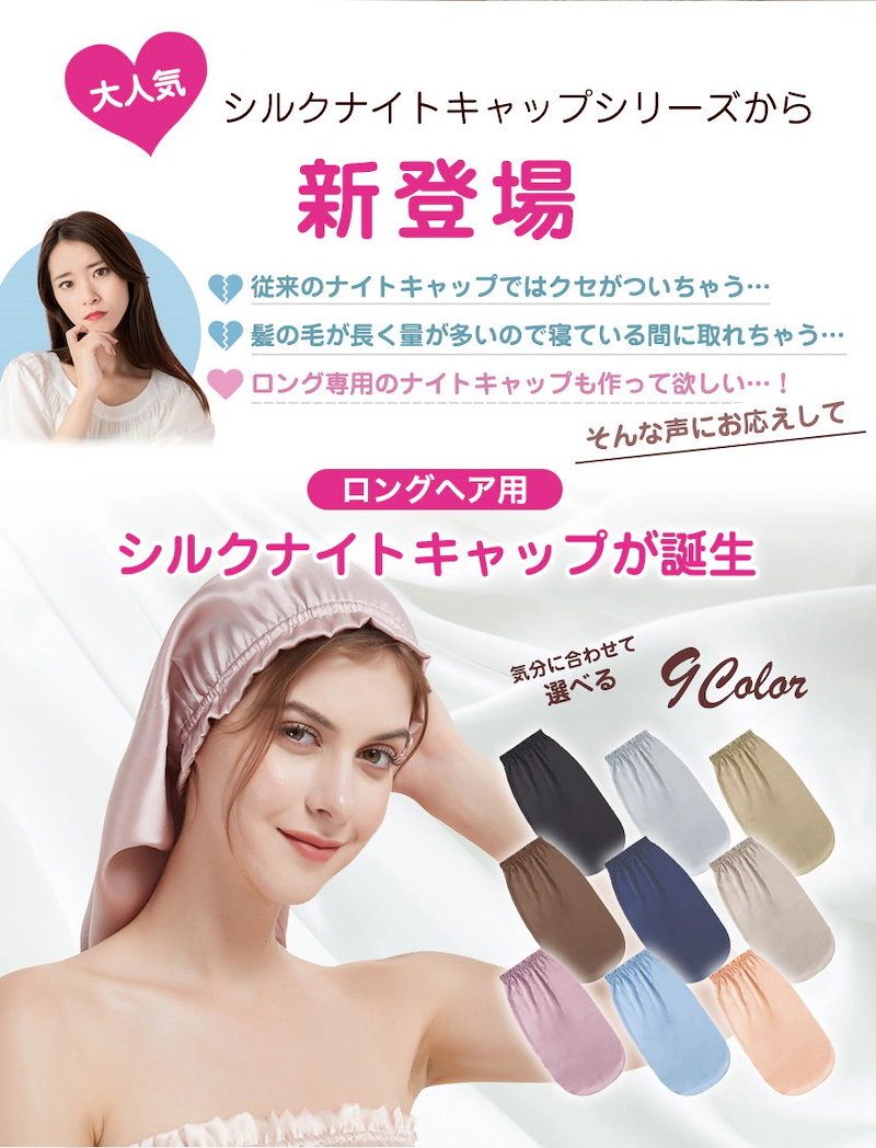 2type 天然シルク ナイトキャップ ロングヘア 美髪摩擦乾燥防止 ヘアキャップ 6A級シルク製 ヘアケア 就寝用 帽子 保湿 調湿