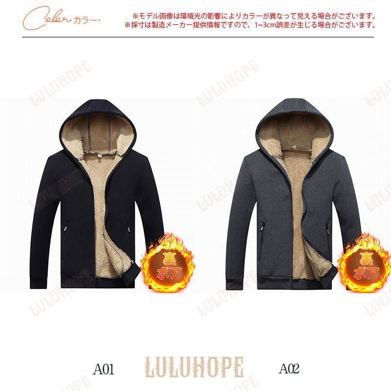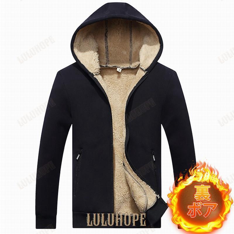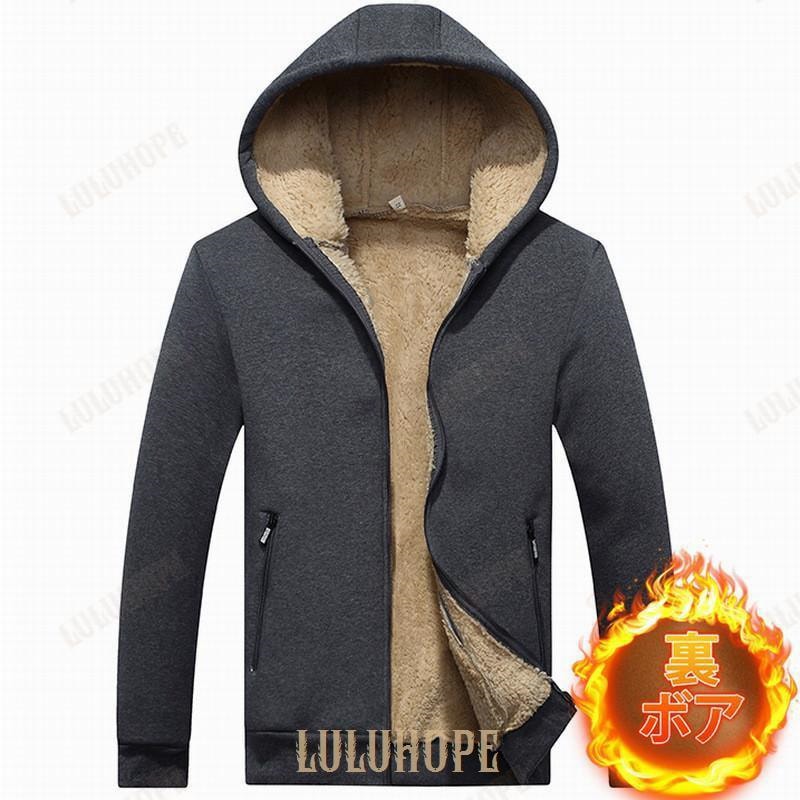 パーカー ジップアップパーカー メンズ 前開き 裏ボア 裏起毛 長袖 ジャケット ブルゾン フード付き ポケット付き トップス 厚手 秋服 ゆったり 暖か