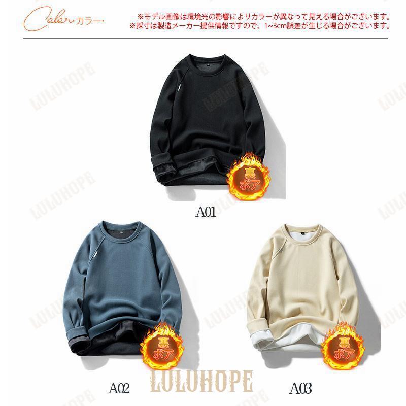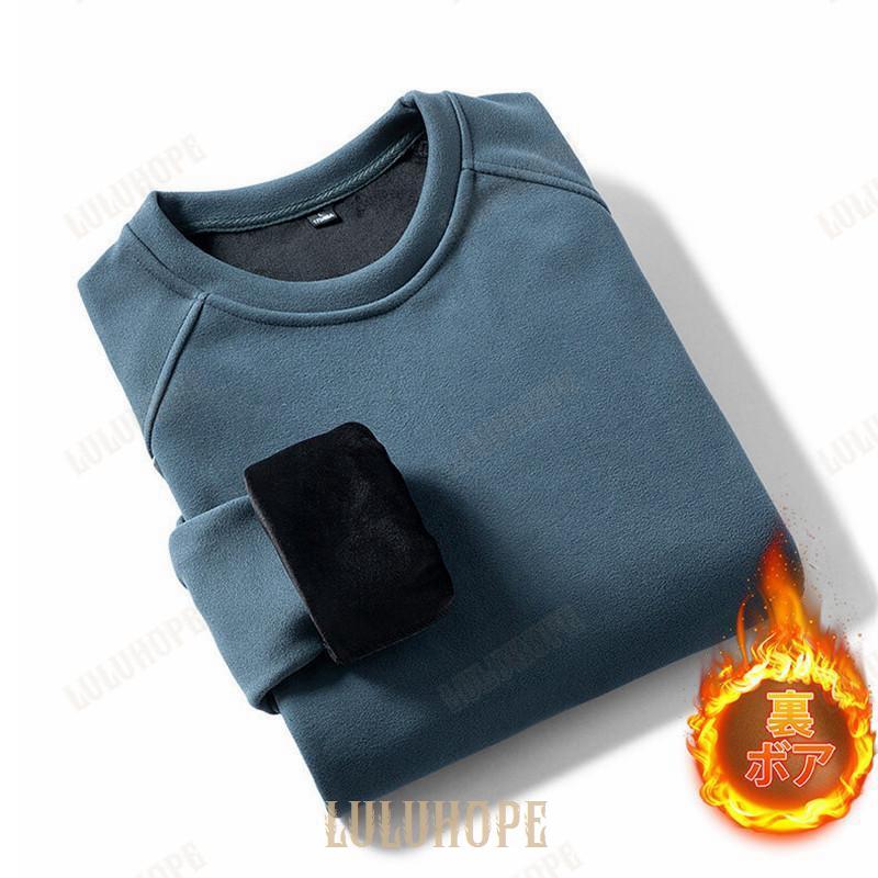 パーカー プルオーバー メンズ 裏ボア 裏起毛 長袖 シャツ クルーネック 秋服 重ね着 インナー トレーナー ゆったり 通勤 無地 スポーツ カジュアル