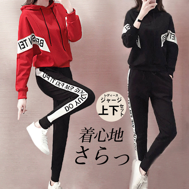 ジャージセットアップレディーススウェットパーカーロングパンツ上下セット長袖運動着スポーツウェア部屋着ダンス衣おしゃれ セットアップ