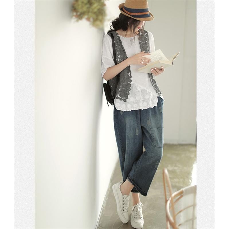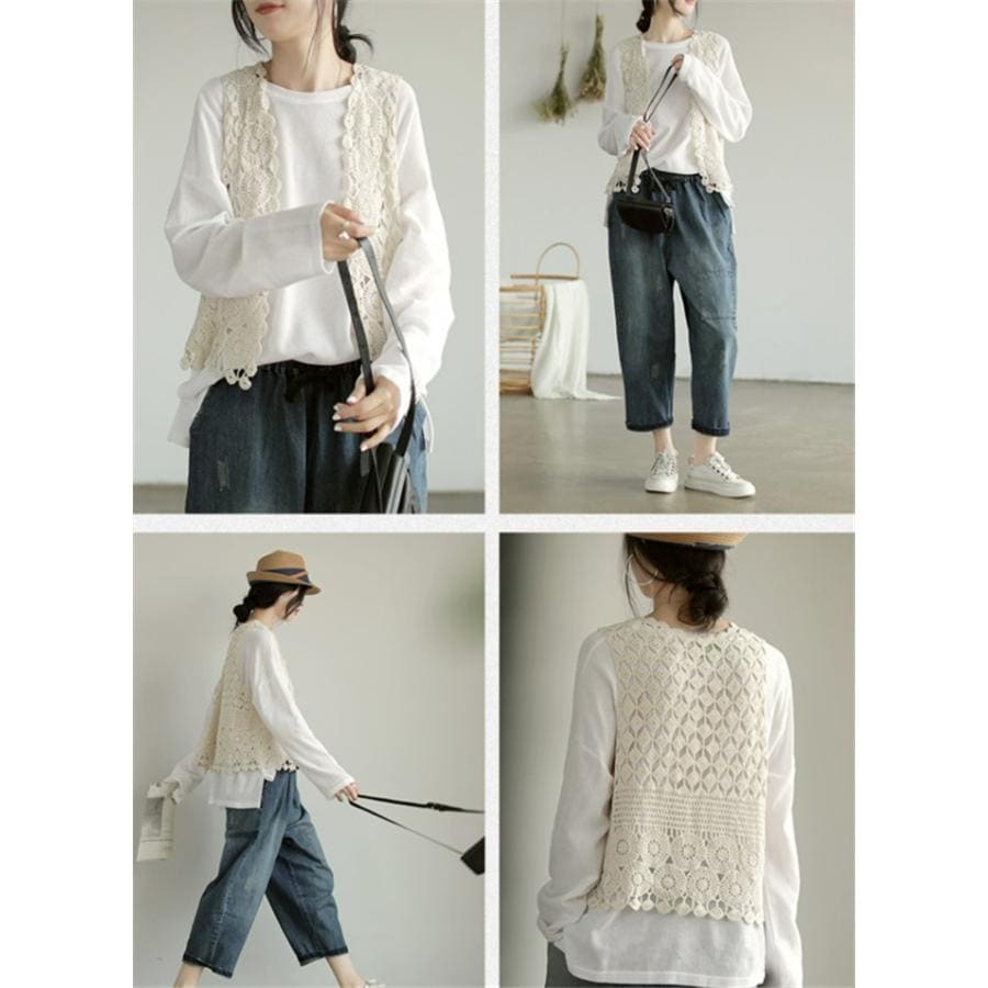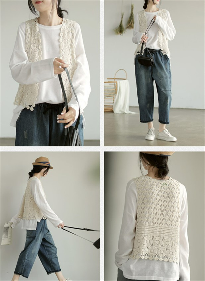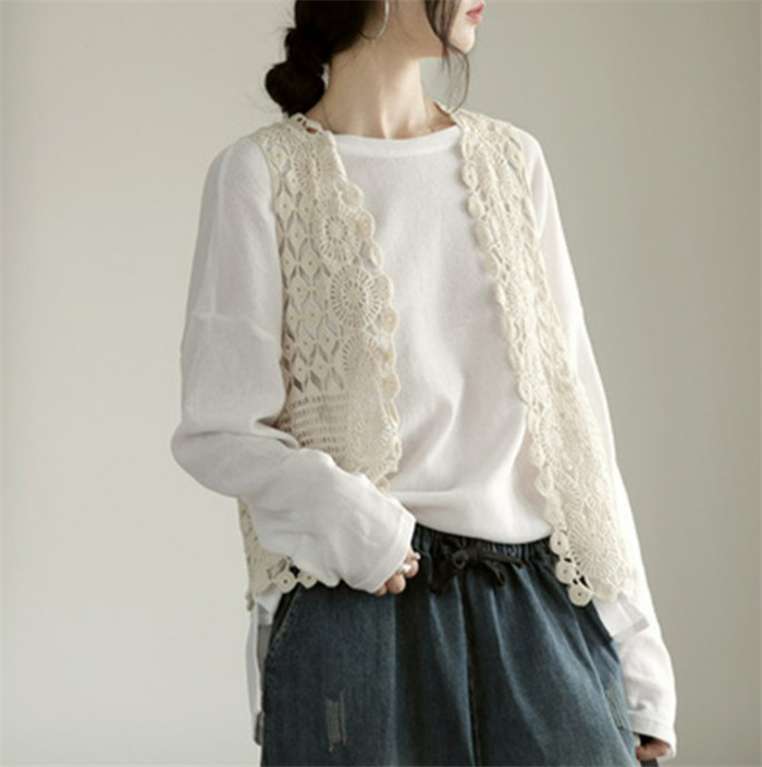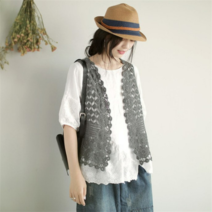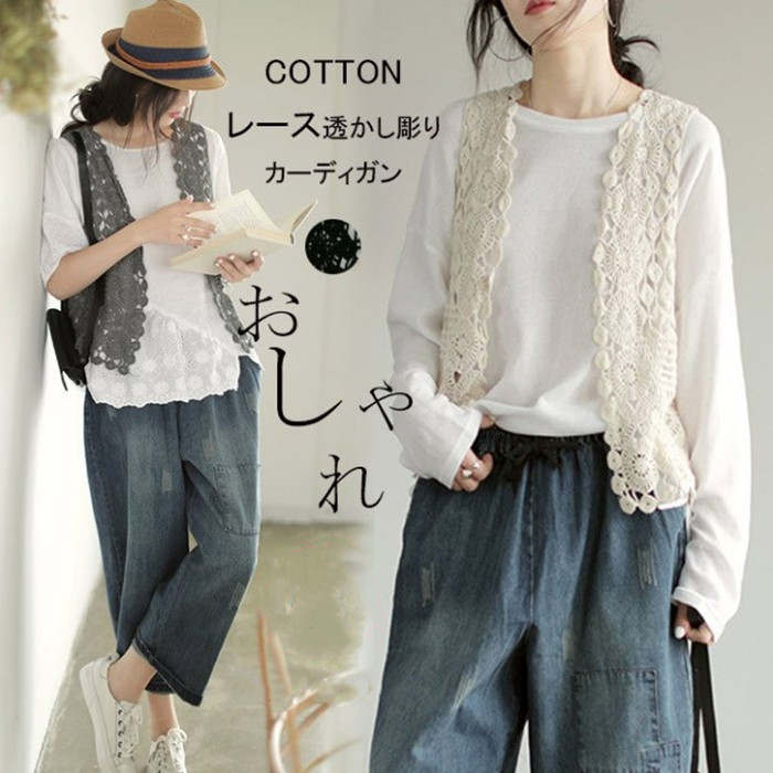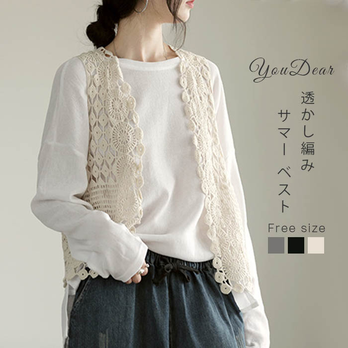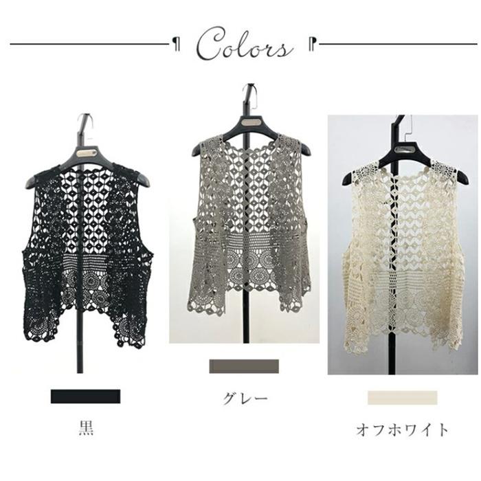 ジレベスト レディース ジレ レース 夏 春夏 おしゃれ ベスト ノースリーブ 前開き ベスト 夏 薄手 ベスト 羽織り ショート丈 花柄 透かし編み