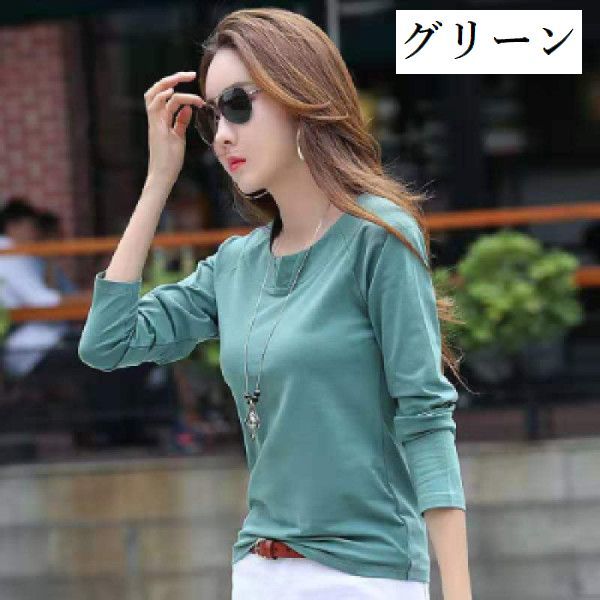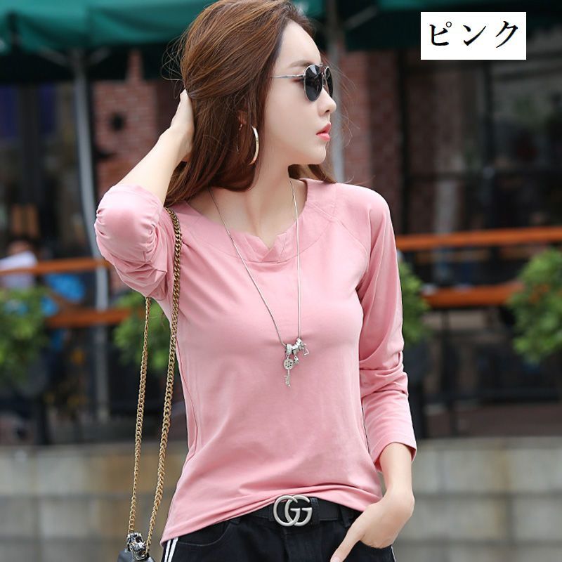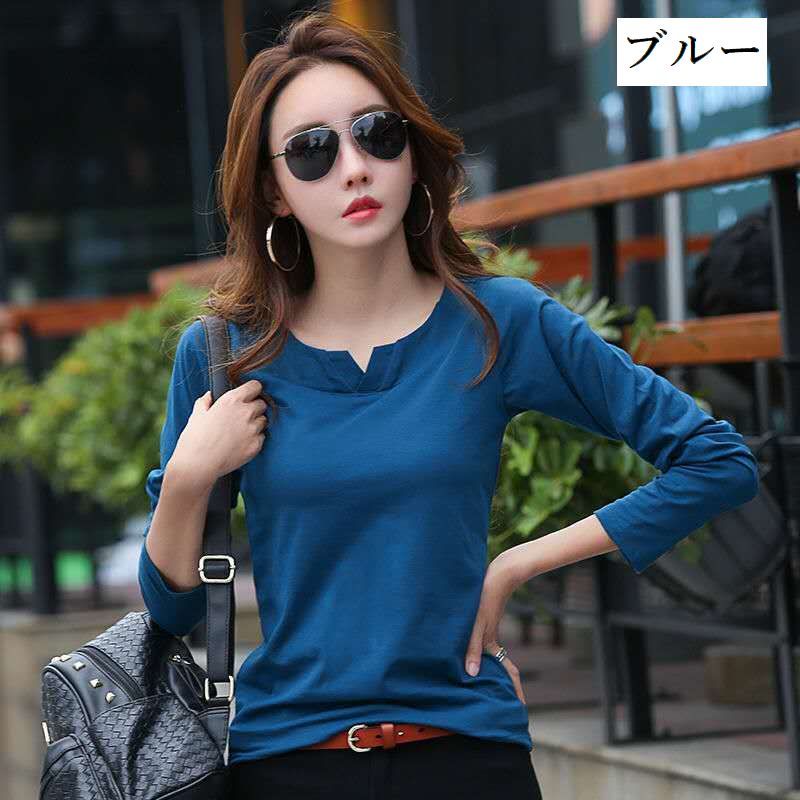 カットソー 長袖 レディース トップス ラウンドネック スリットネック プルオーバー 無地 ソリッドカラー 婦人服 女性用 シンプル 着回し カジュアル きれいめ 普段着 お出かけシーン