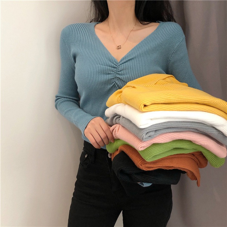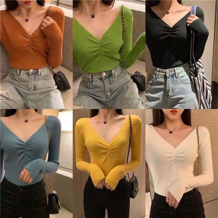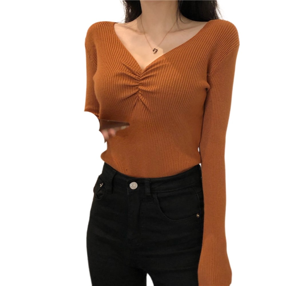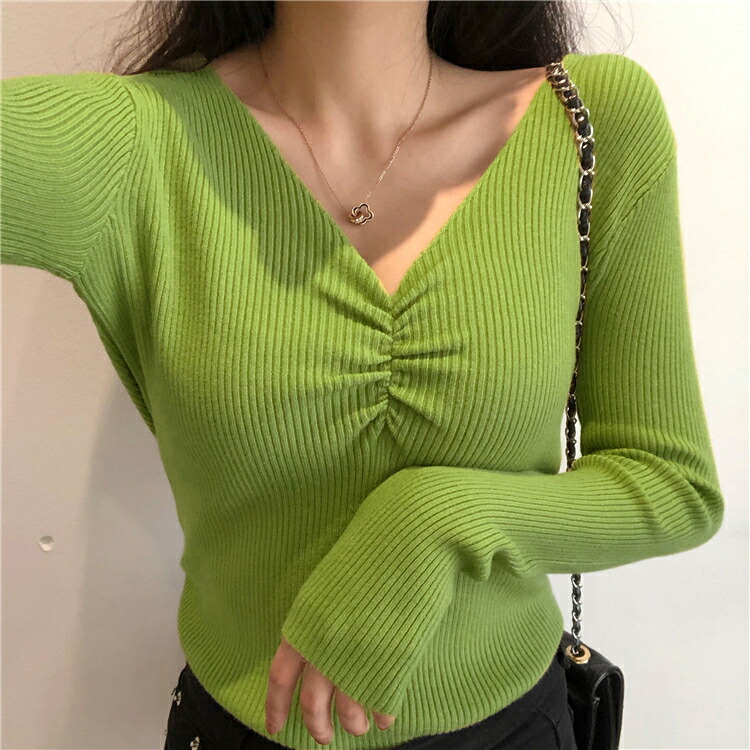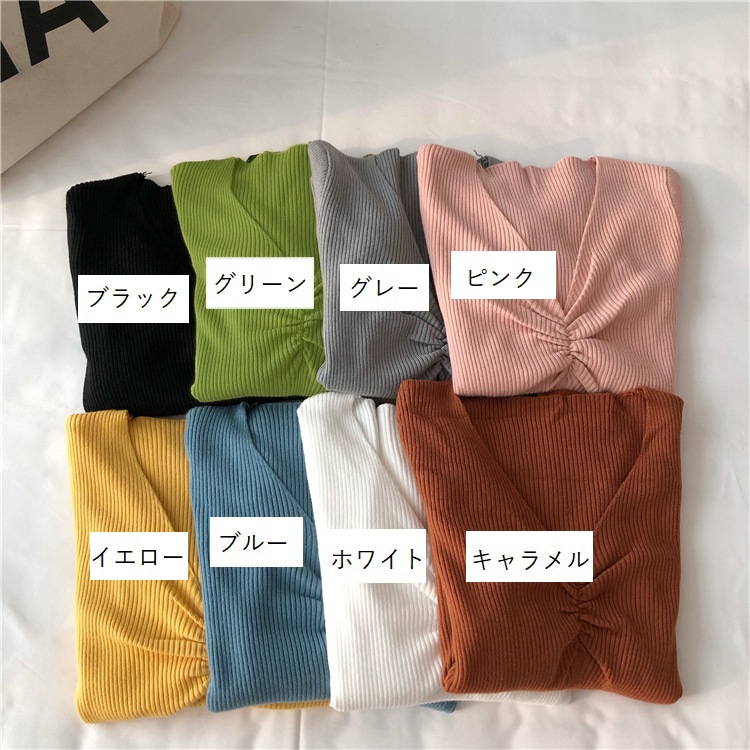 カットソー 長袖 ロングTシャツ レディース 女性 トップス Vネック ギャザー シャーリング リブ生地 無地 単色 おしゃれ シンプル カジュアル かわいい 着回し 定番 ベーシック お出かけ 通勤