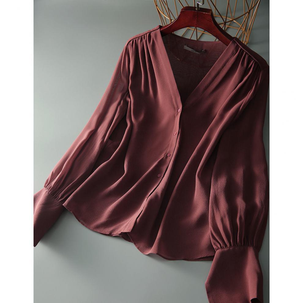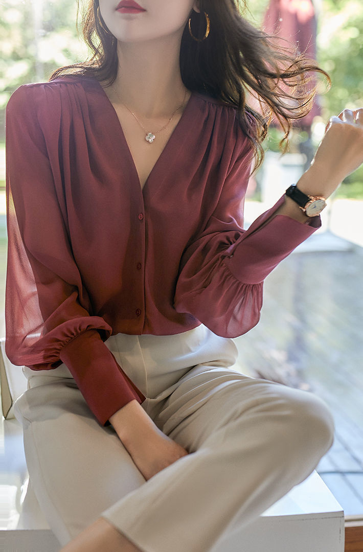 長袖シャツ春秋レディース 2024新作フレンチVネックデザイン感トップス気品ゆったりシフォンブラウス シャツ ブラウス