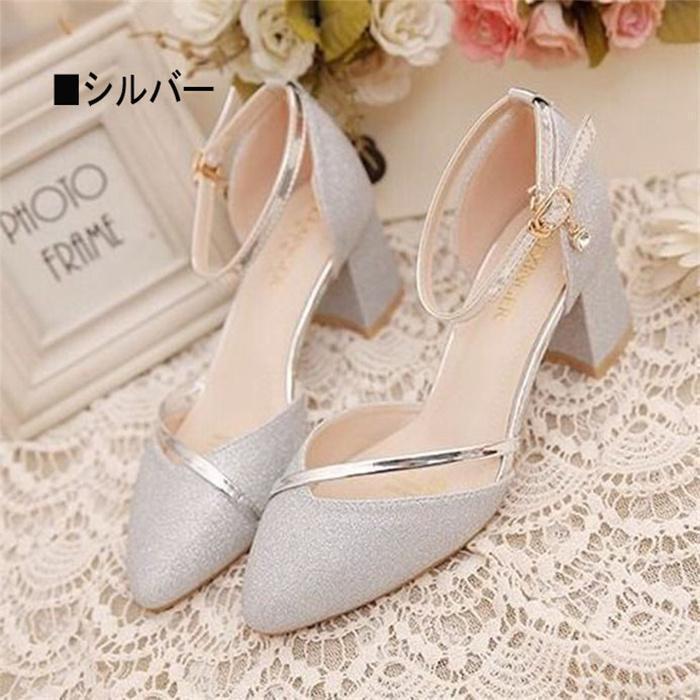 人気新作 シューズ 結婚式 レディース 疲れない パンプス 痛くない ポインテッドトゥ ストラップ キラキラ ピンヒール パーティーシューズ 歩きやすい 50代