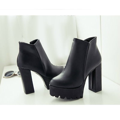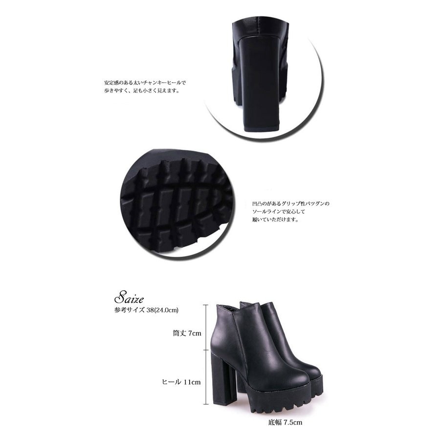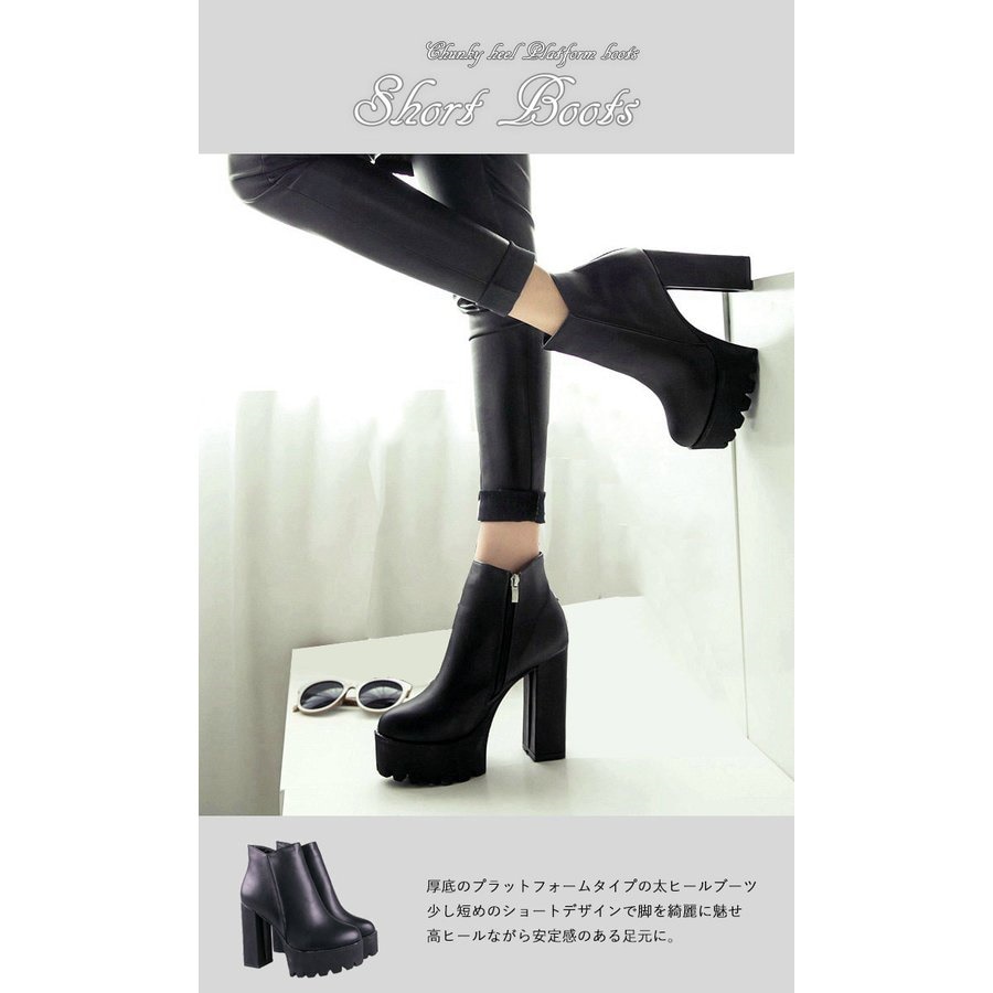 ブーツ レディース サイドジップ 厚底 太ヒール チャンキーヒール ショートブーツ ショート ミドルブーツ