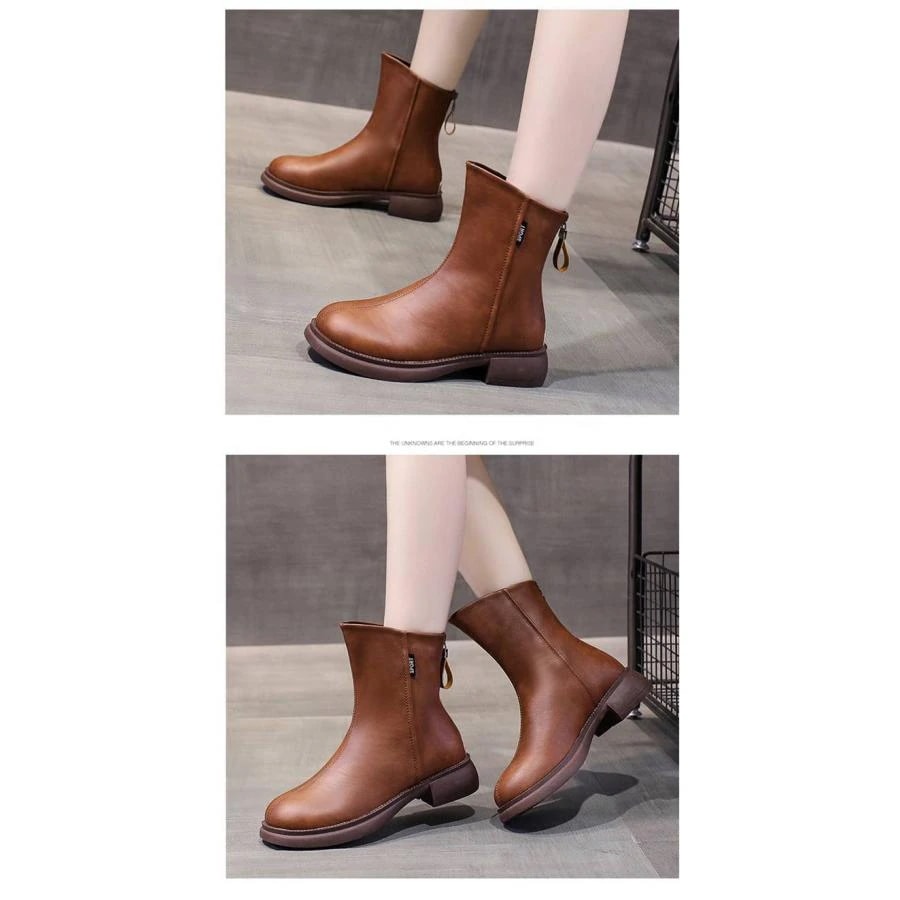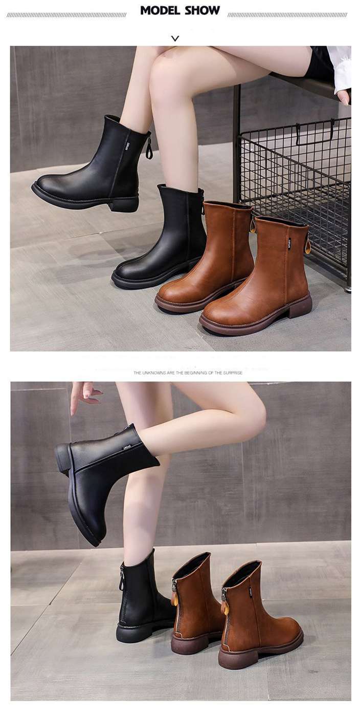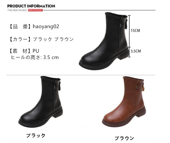 ショートブーツ レディース ローヒール マーチンブーツ ファスナー カジュアル シンプル シューズ 履きやすい 疲れにくい ショート ミドルブーツ