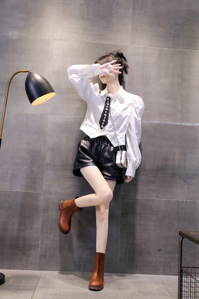 シアースリーブ ドッキングシャツ ボウタイシャツブラウス