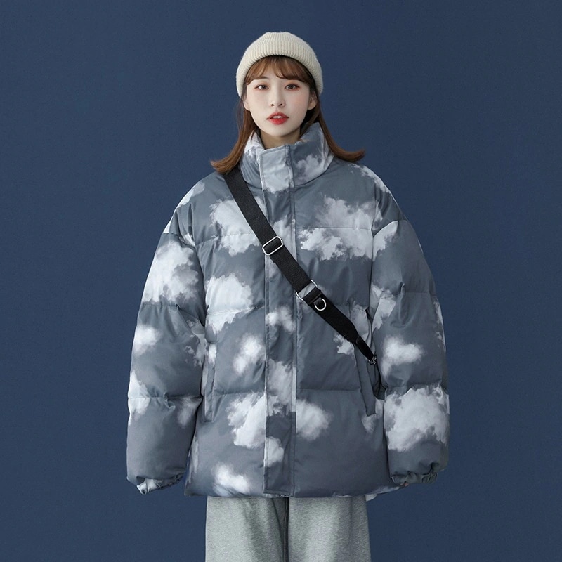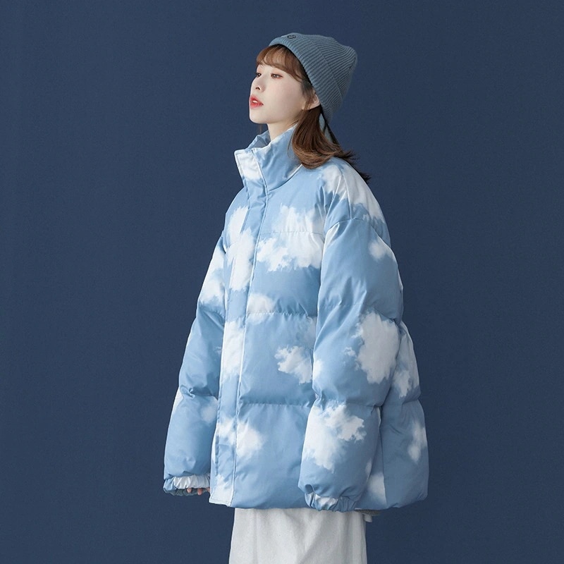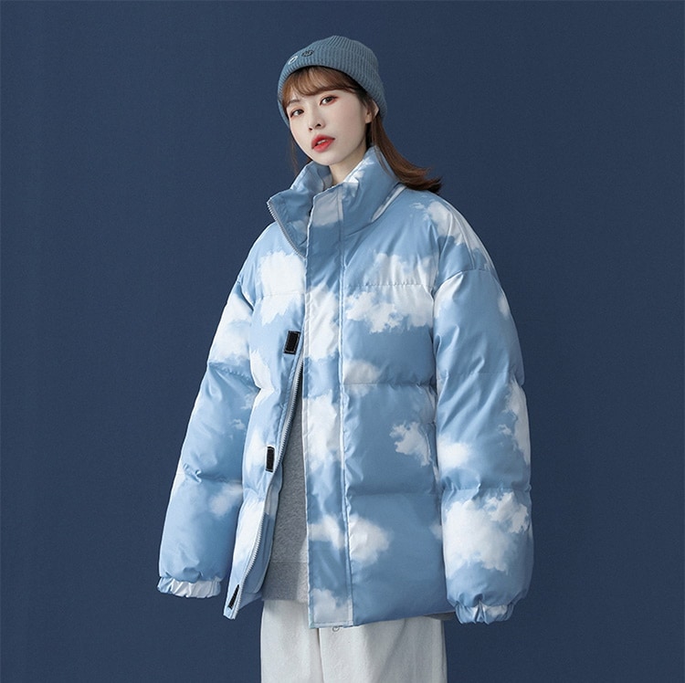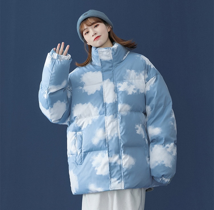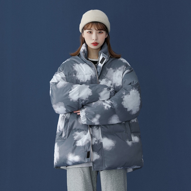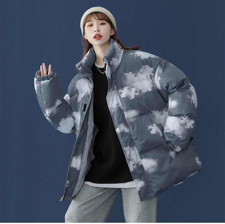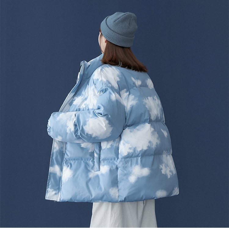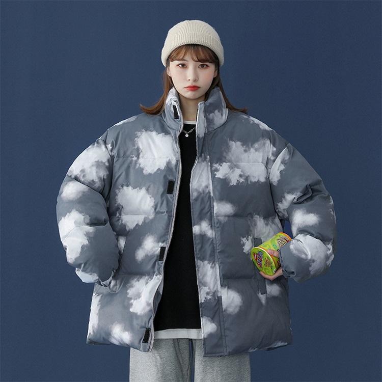 かわいい 雲柄 中綿ジャケット レディース 中綿コート 着痩せ ダウンジャケット アウター 冬 防寒 ダウンジャケット コート