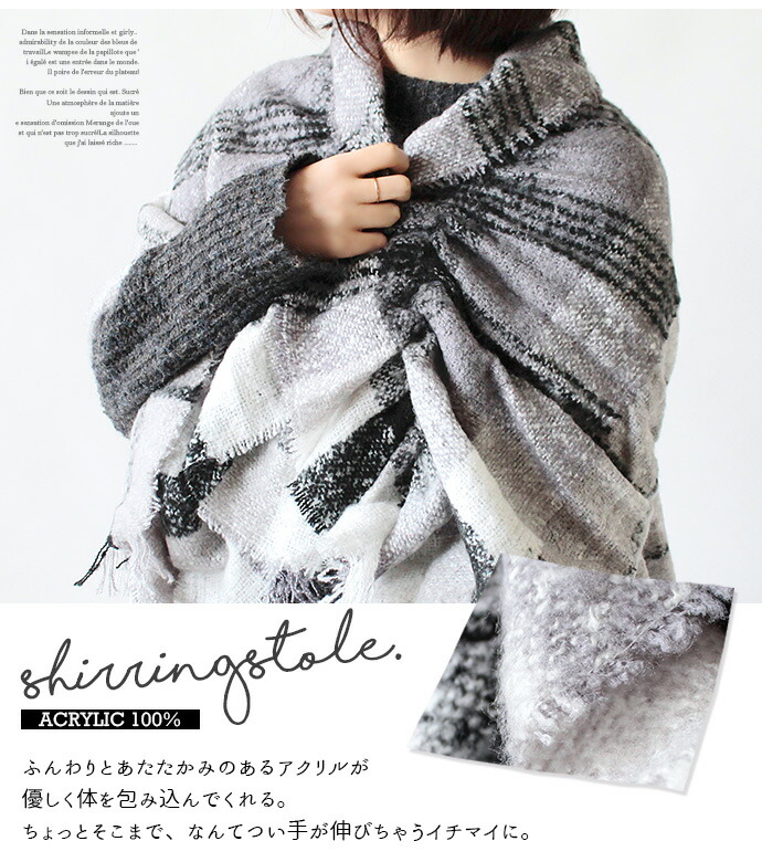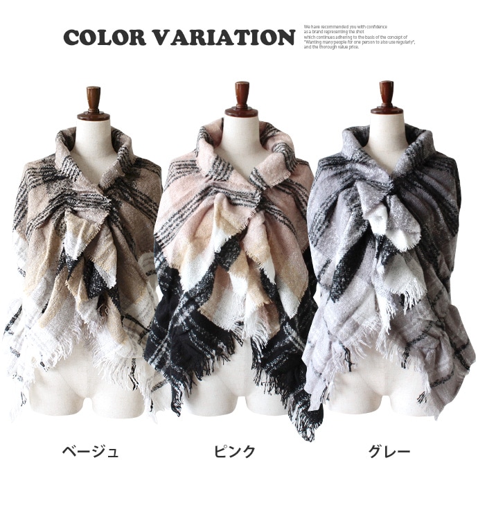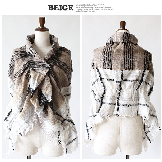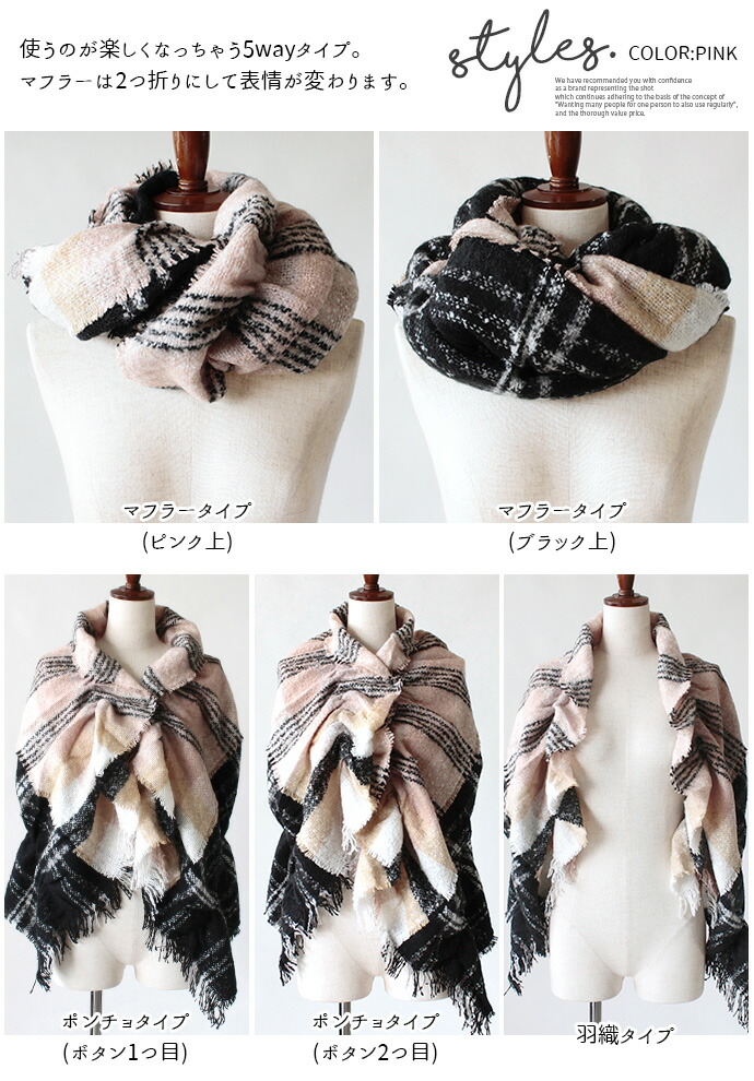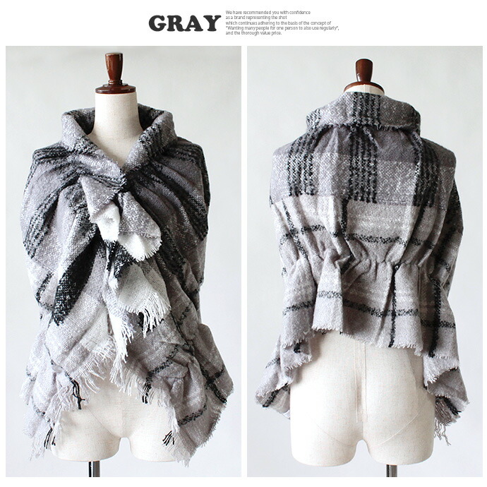 ストール 肩掛け マフラー ポンチョ 羽織 レディース あったか ギャザー チェック 5way ゴム ボタン 前閉じ ボリューミー ボリューム ふわふわ くしゅくしゅ