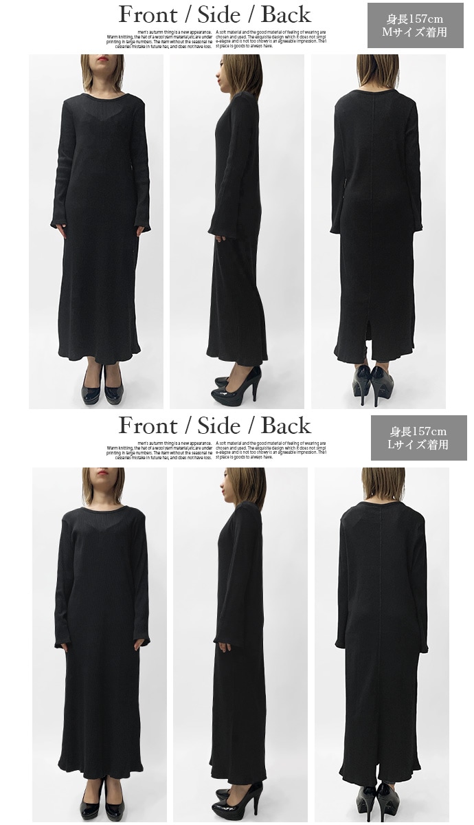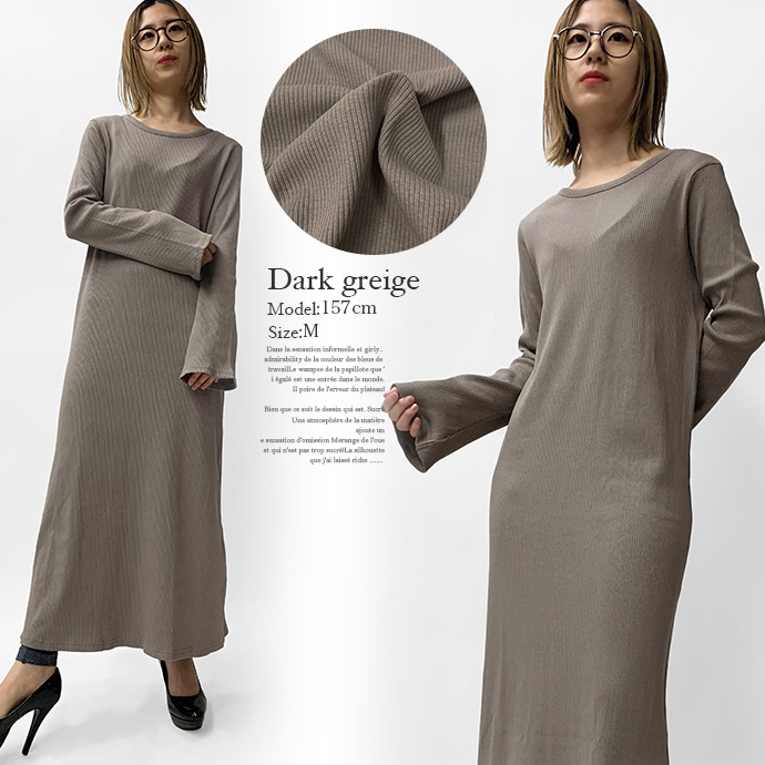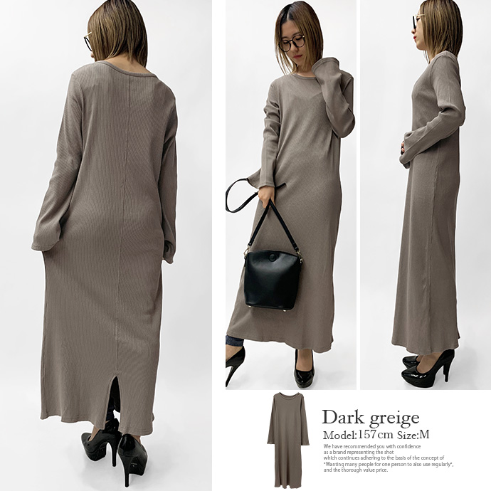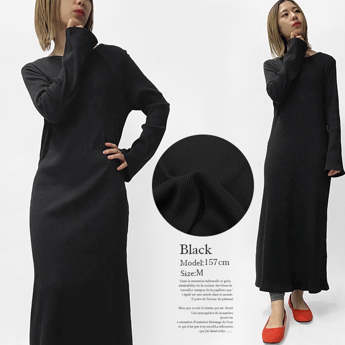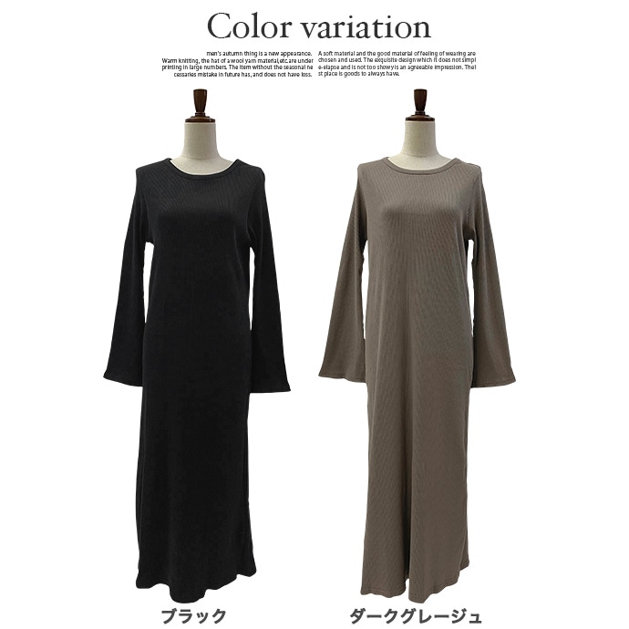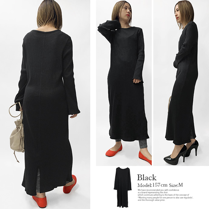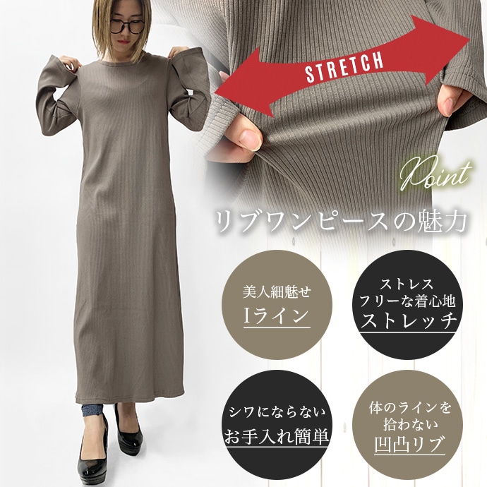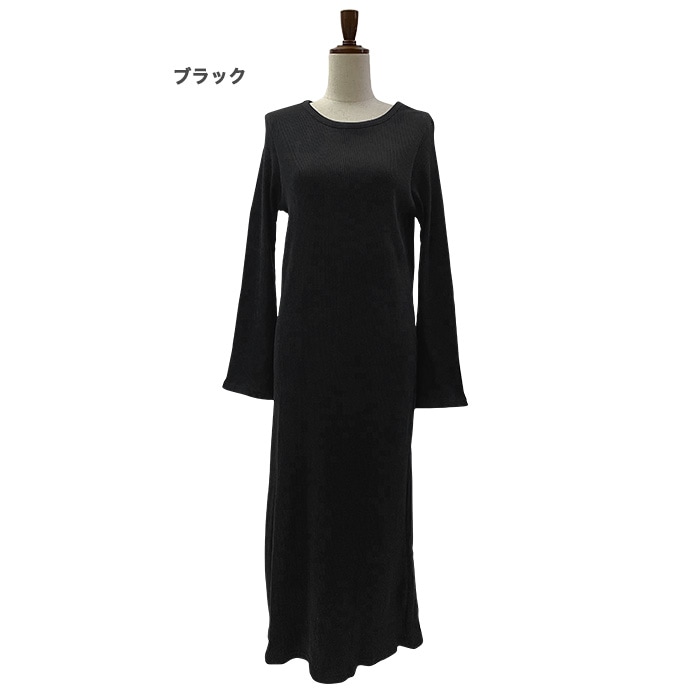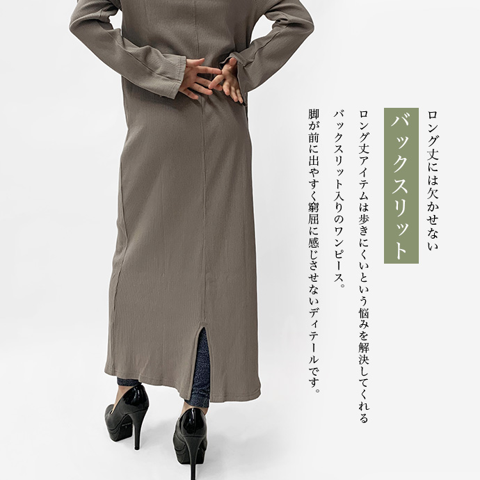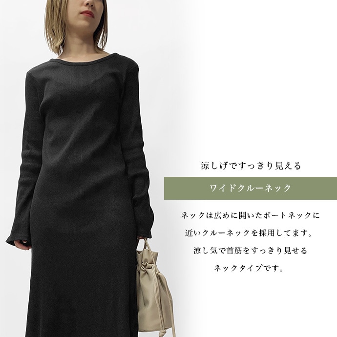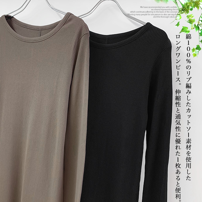 綿100%のリブ編みしたカットソー素材を使用したロングワンピース。