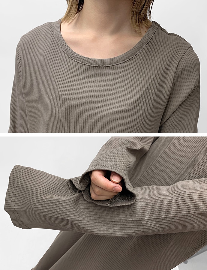 リブ編みすることでフィット感をアップさせた優しい肌触りのカットソー素材。