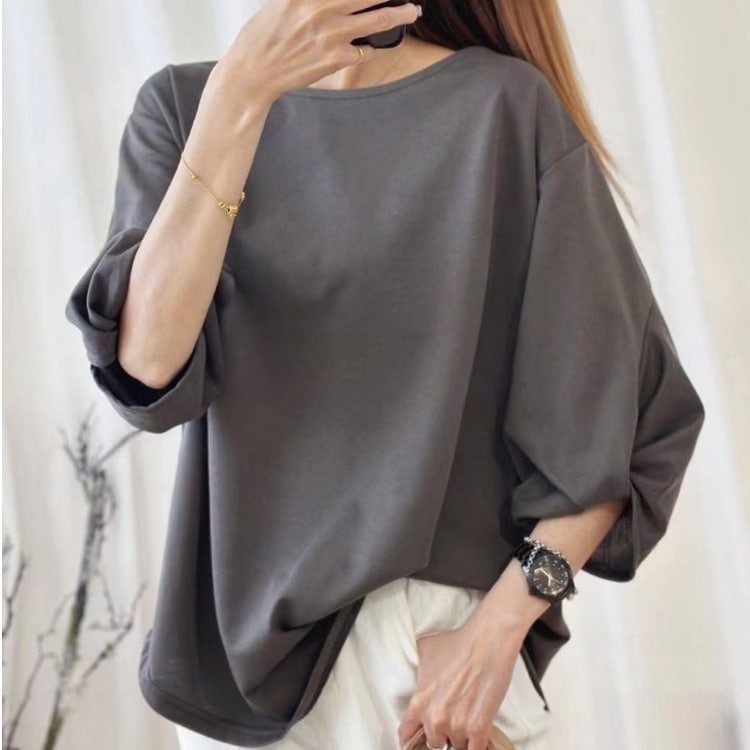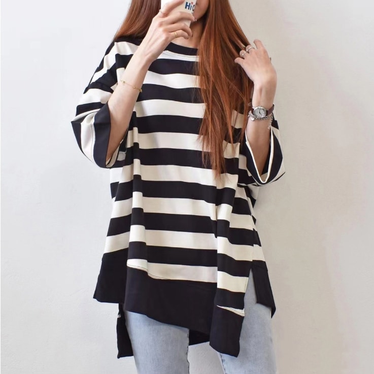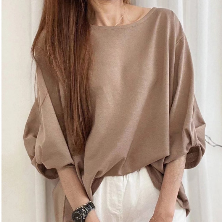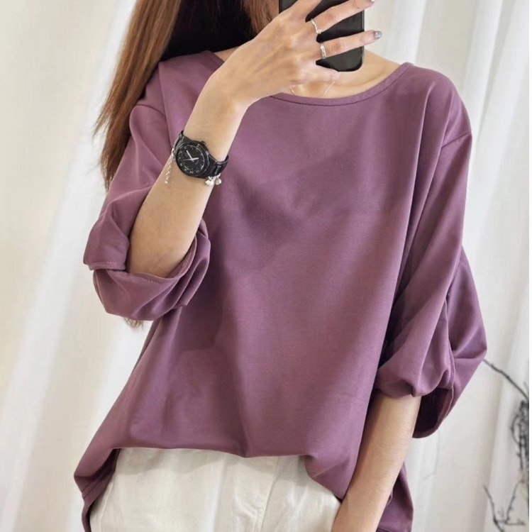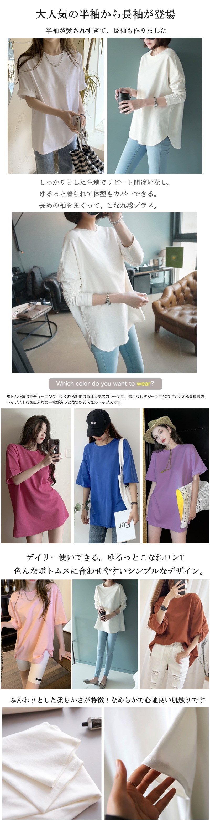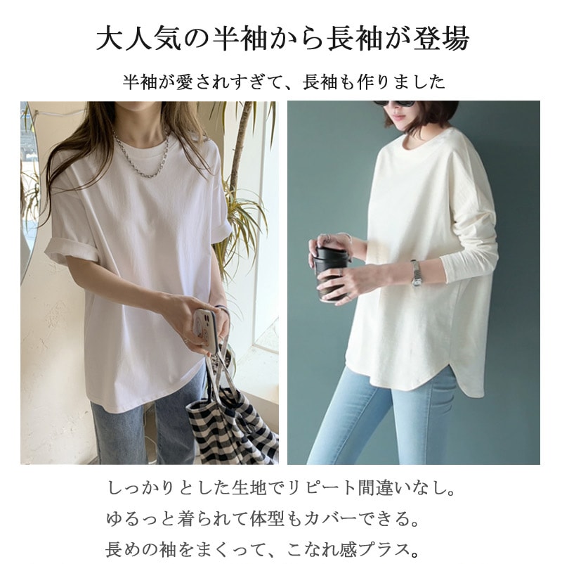 大人気ロングセラーのゆったりTシャツ 定番レディースTシャツ 半袖 長袖 七分袖 レディーストップス ゆったり シンプル ビッグT Tシャツ 無地 ボーダー 春夏