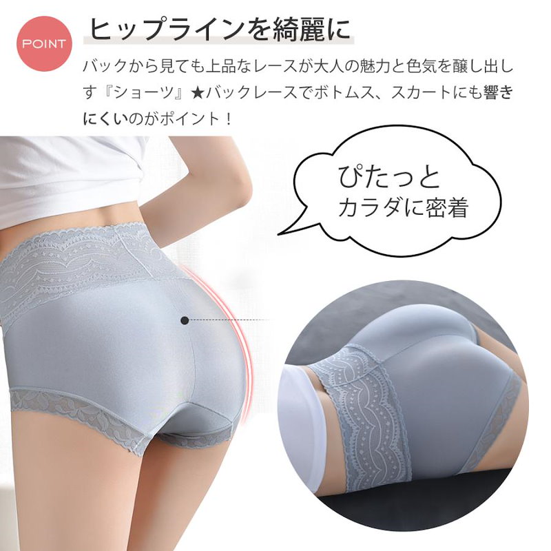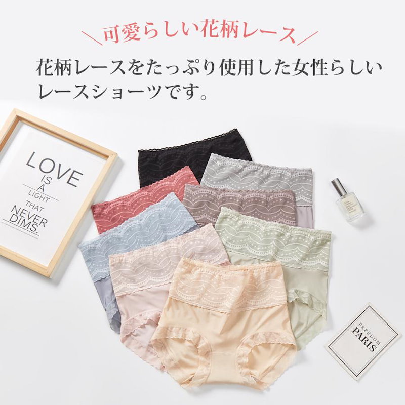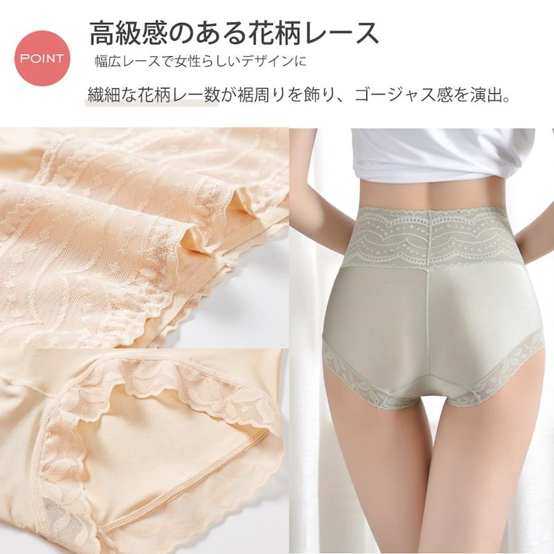 ショーツ レース 3枚セット レディース ハイウェスト シームレス 無地 深履き レースすっぽり 下着 パンツ 冷えとり 通気 産後 骨盤 補正下着