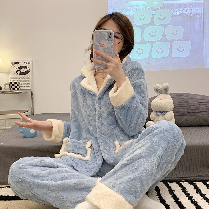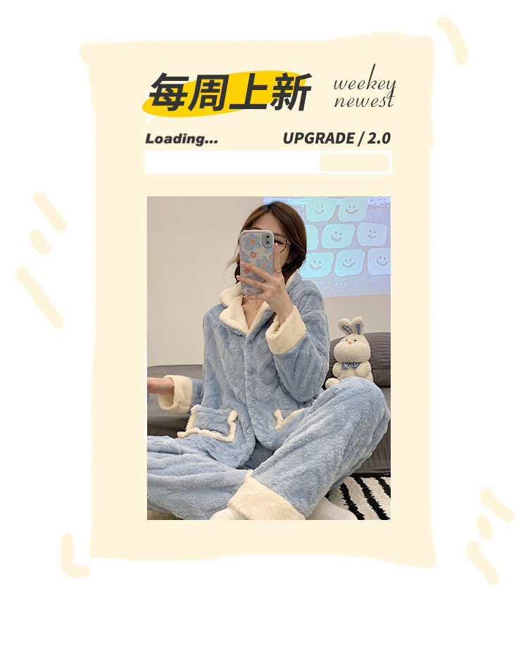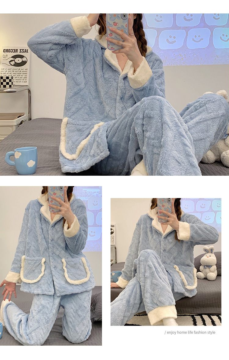 冬のパッド入り厚手サンゴベルベット2024新しい春と秋のフランネル暖かいスーツホームウェア パジャマ ルームウェア パジャマ ルームウェア