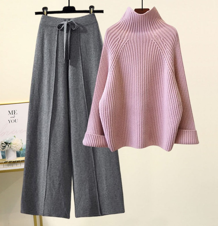 秋冬 新作 おしゃれ 気質 レディースセットアップ ニット アウター 二点セット 上下セット セーター ニットワイドパンツ セットアップ