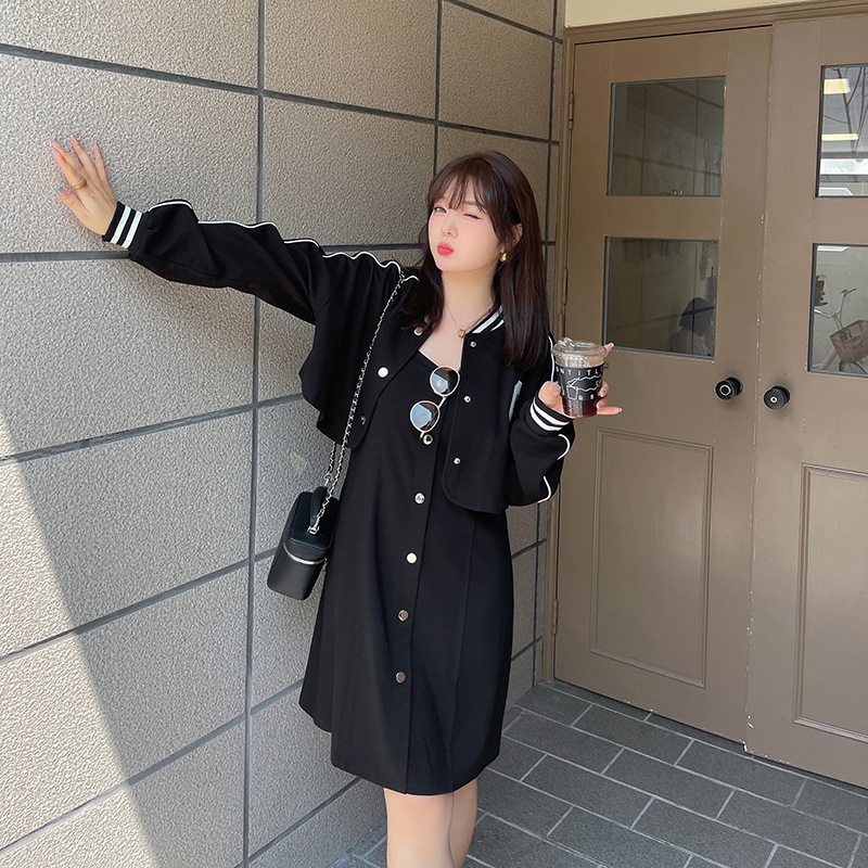 2024秋新品 セットアップ XL-5XL 大きいサイズ ジャケット キャミワンピース 体型カバー レディース ワンピースセット ジャージ トレーナー スウェットセット メガ割