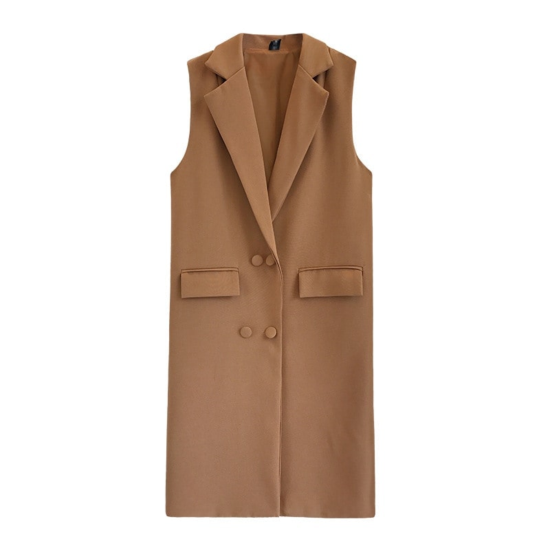 レイヤードトップススーツ ベスト カーディガン セミロング スリム見え 大サイズ ノースリーブ ベスト