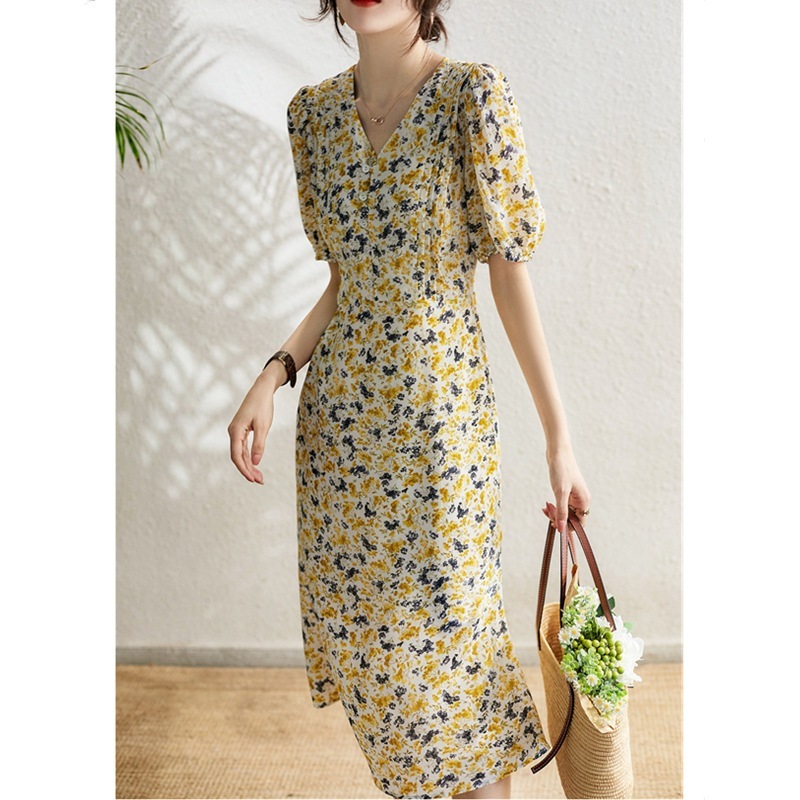 0代40代ワンピース 秋冬新作 長袖ワンピース きれいめ 花柄ワンピース シフォン フレアスカート 通勤リネンワンピ 長袖ロング マキシ丈ワンピ