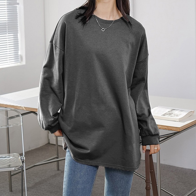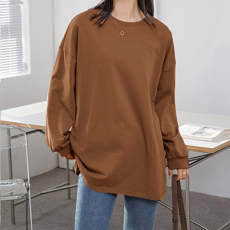 2024秋冬新作韓国ファッション人気商品 Tシャツ無地シンプル長袖 レディース トップス カットソー 上着トレーナースウェットトップス ストレッチドロップショルダー