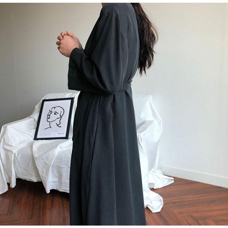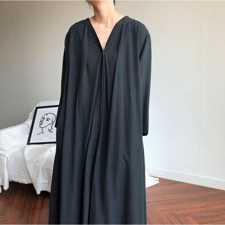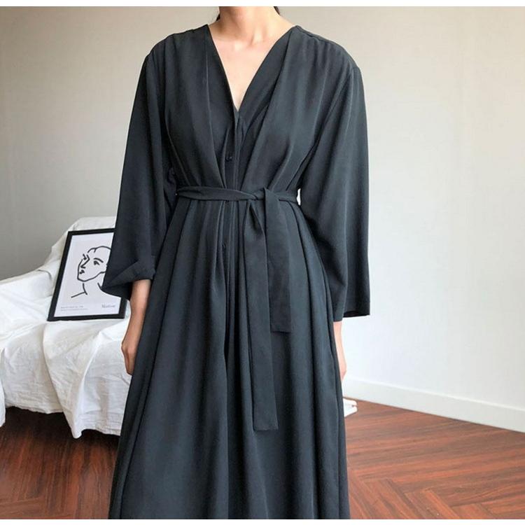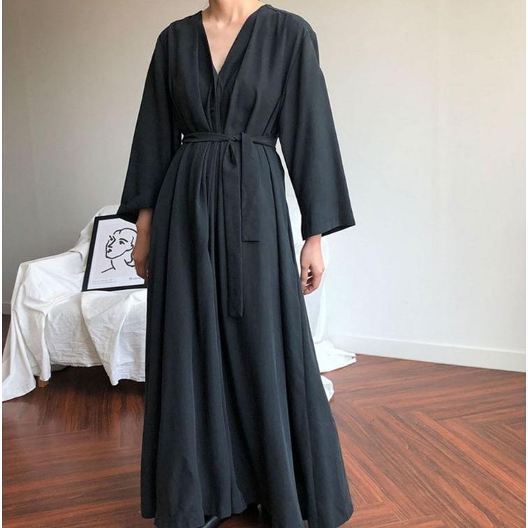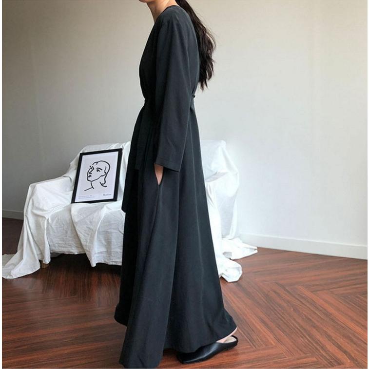 マキシワンピース レディース 40代 春秋 長袖ワンピース Vネック 黒ワンピース ロング丈フレアスカート オシャレ韓国風 ゆったり 30代 50代