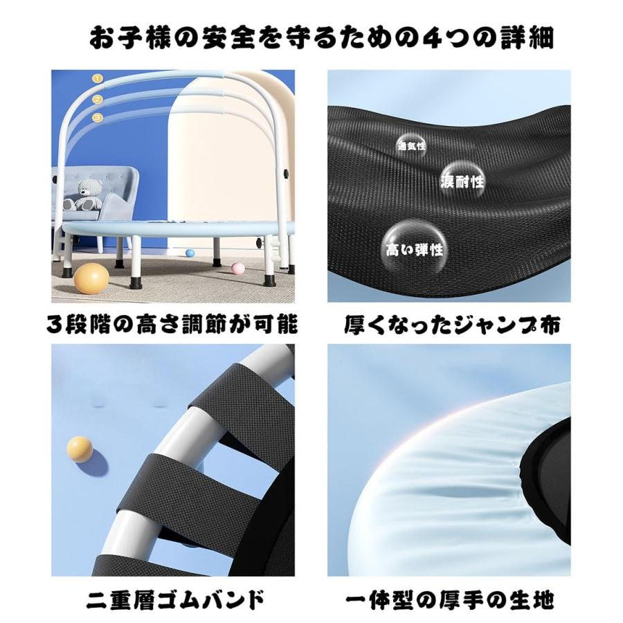 トランポリン 室内子供大人兼用 手すり3段階調節 トレーニング エクササイズ あそび 家庭用 耐荷重200kg 折りたたみ式