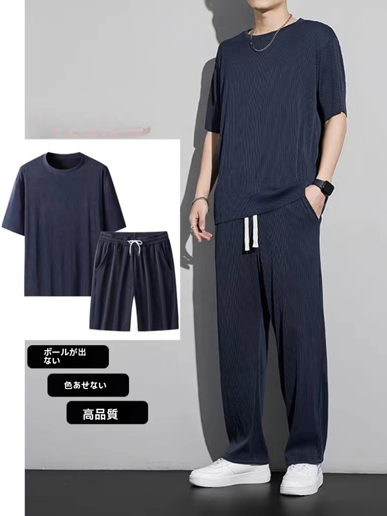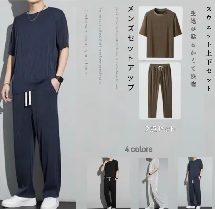 長ズボン半ズボンオプション メンズ セットアップスウェット上下セットルームウェア セットアップゆったり無地Tシャツ+パンツ柔らかい生地 着心地がよい 楽で快適