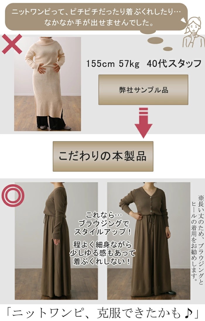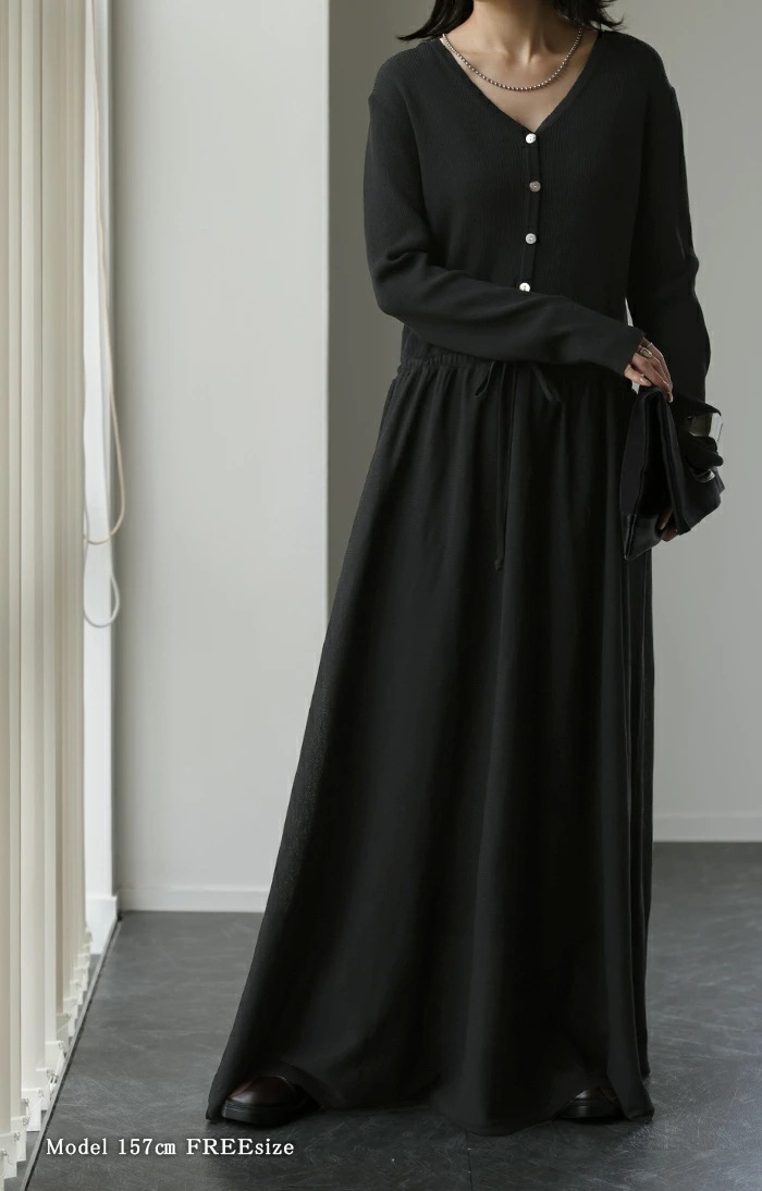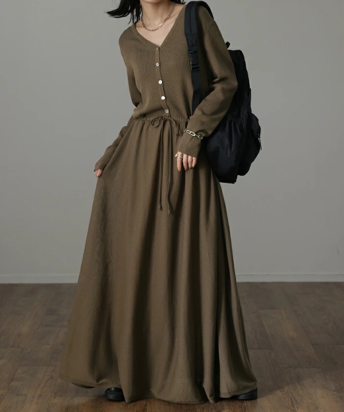 Q-CQ-07秋冬新Vネックスリム長袖ニットワンピースワンピースフェイクツーピースワンピーススタイル ニットワンピ