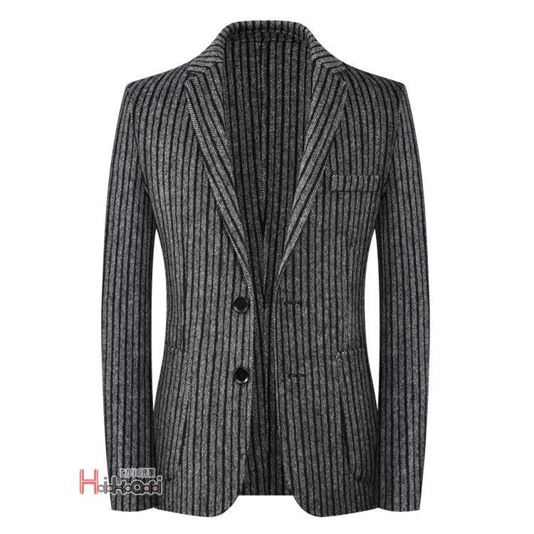 ブレザー メンズ 50代 秋冬 2つボタン 秋冬 ウール テーラード ビジネス ゴルフ レギュラーフィット ストライプ テーラード