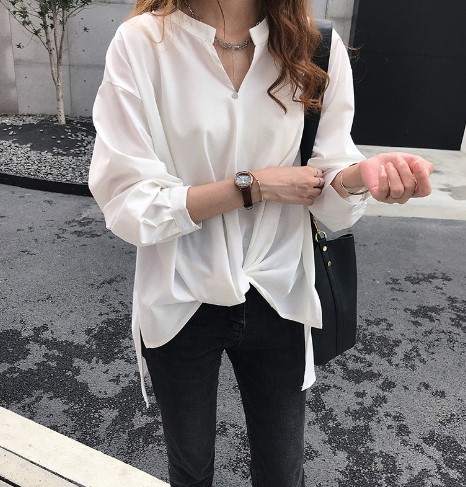 シフォンシャツ シルクシャツ長袖ルーズ Vネックトップスボトム シャツ シースルーシャツ ブラウス シャツ レディース 長袖ブラウス 韓国ファッション