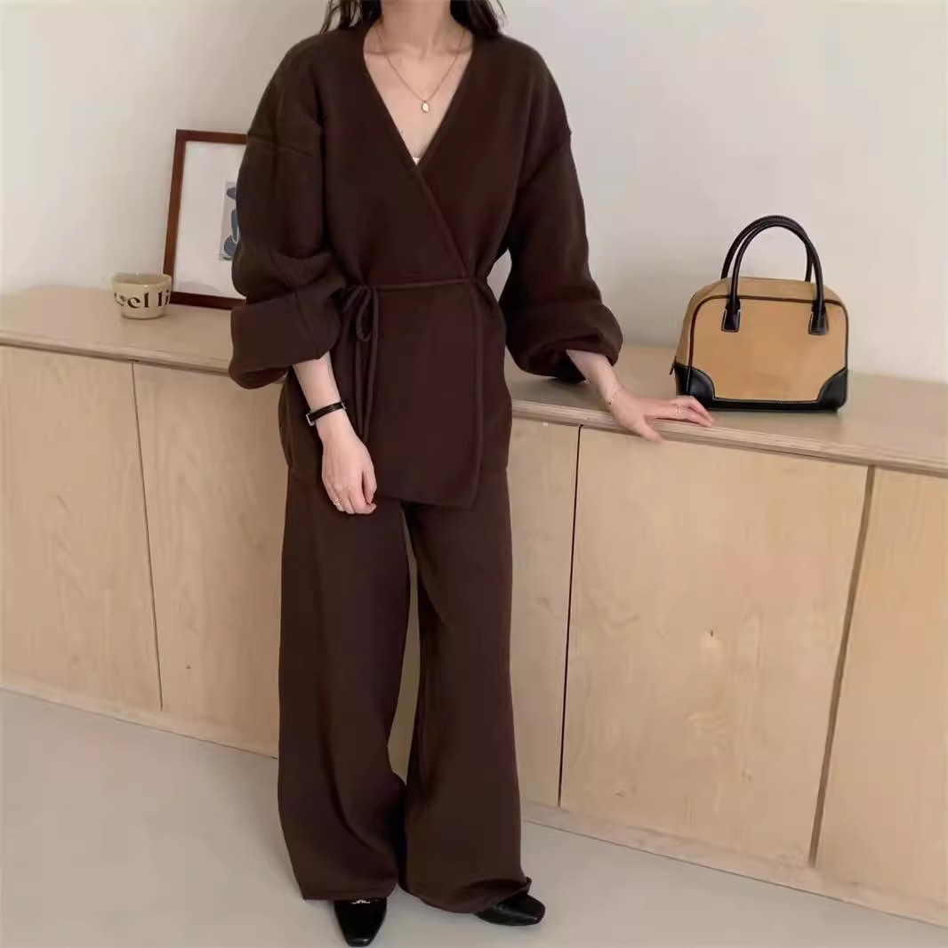 2024秋冬新作 ドレス ニットレトロスーツ カジュアル セットアップ 韓国風 ニット セットアップ レディース人気なリプニット セットアップ